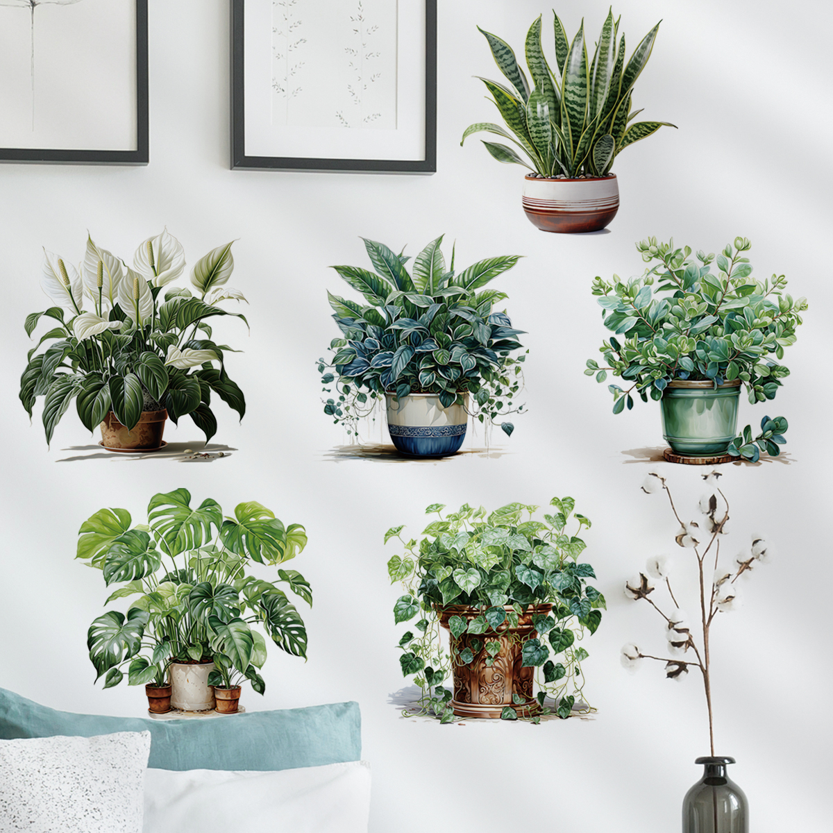 ✨Sticker Giấy Dán Tường Decal Dán tường Tranh Dán Tường Trang Trí Tường Mẫu 6 Chậu Hoa Lá Hoa Lá ZH-1009