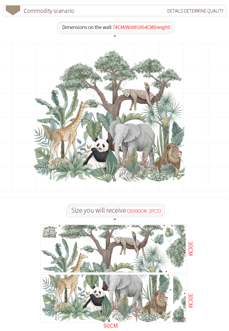 ✨Sticker Giấy Dán Tường Decal Dán tường Tranh Dán Tường Trang Trí Tường Mẫu Sở Thú Châu Phi ZDB-2472