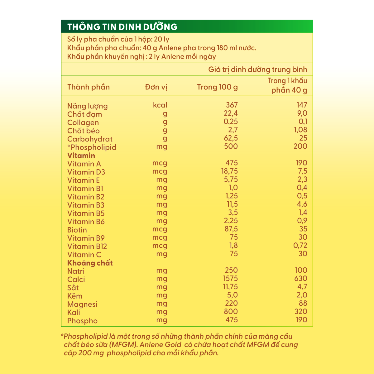 ANLENE GOLD LÀ SẢN PHẨM SỮA CHỨA HỆ DƯỠNG CHẤT MOVEPROCung cấp dinh dưỡng tăng cường với hoạt chất MFGM được KIỂM NGHIỆM LÂM SÀNG giúp cơ thể thêm linh hoạt và Vitamin B tiếp thêm năng lượng.