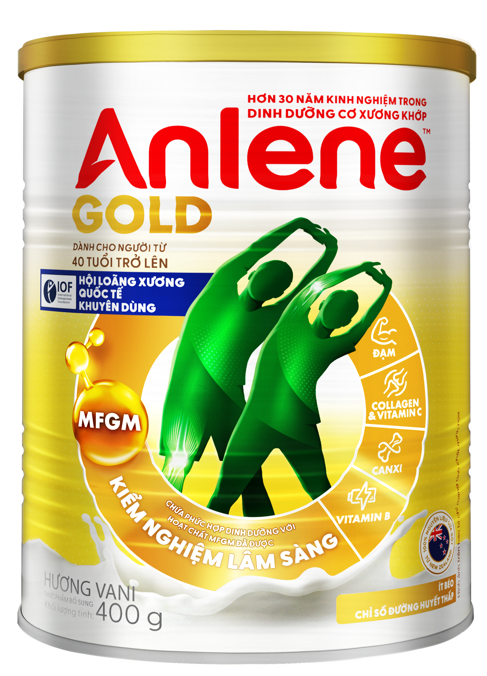 ANLENE GOLD LÀ SẢN PHẨM SỮA CHỨA HỆ DƯỠNG CHẤT MOVEPROCung cấp dinh dưỡng tăng cường với hoạt chất MFGM được KIỂM NGHIỆM LÂM SÀNG, giúp cơ thể thêm linh hoạt và Vitamin B tiếp thêm năng lượng.