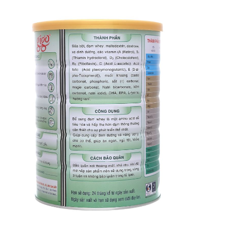 - Thành phần: Sữa Gigo Gain Plus chứa các thành phần dinh dưỡng quan trọng như:
