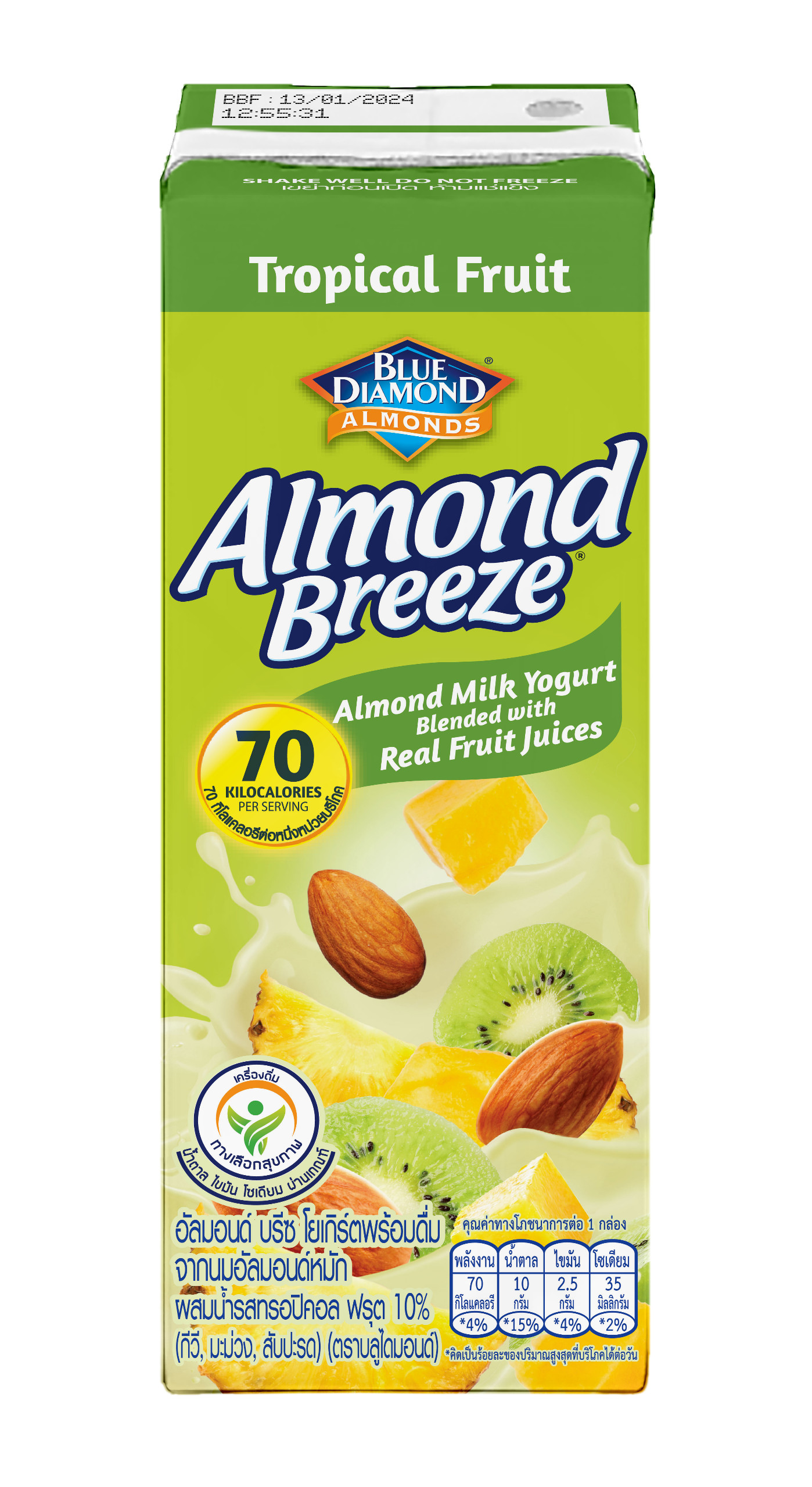 Sữa chua uống ALMOND BREEZE từ Sữa hạt hạnh nhân lên men với 10% hỗn hợp nước ép trái cây nhiệt đới (Kiwi, Xoài, Thơm) (Sản phẩm của Tập đoàn BLUE DIAMOND – Mỹ) là thức uống bổ dưỡng hàng ngày tốt cho sức khỏe.   Sản phẩm đặc biệt THÍCH HỢP VỚI KHÁCH HÀNG BỊ DỊ ỨNG VÀ KHÔNG DUNG NẠP ĐƯỢC ĐƯỜNG SỮA (Lactose);   Sản phẩm phù hợp với những người ăn chay; phụ nữ mang thai với thành phần dưỡng chất giàu Canxi và Vitamin E; không Cholesterol, không chứa các thành phần từ đậu nành và sữa, Vitamin C, A, B có hỗn hợp nước ép trái cây.   Sữa chua uống ALMOND BREEZE từ Sữa hạt hạnh nhân lên men với 10% hỗn hợp nước ép trái cây thật (Kiwi, Xoài, Thơm) là sản phẩm mới về dòng sữa chua từ sữa hạt nhập khẩu lần đầu có mặt tại Việt Nam.   Hạn sử dụng: 12 tháng kể từ ngày sản xuất.   HDSD: Bảo quản sản phẩm ở nơi khô ráo, thoáng mát.   Sản phẩm sẽ ngon hơn nếu ướp lạnh trước khi dùng.