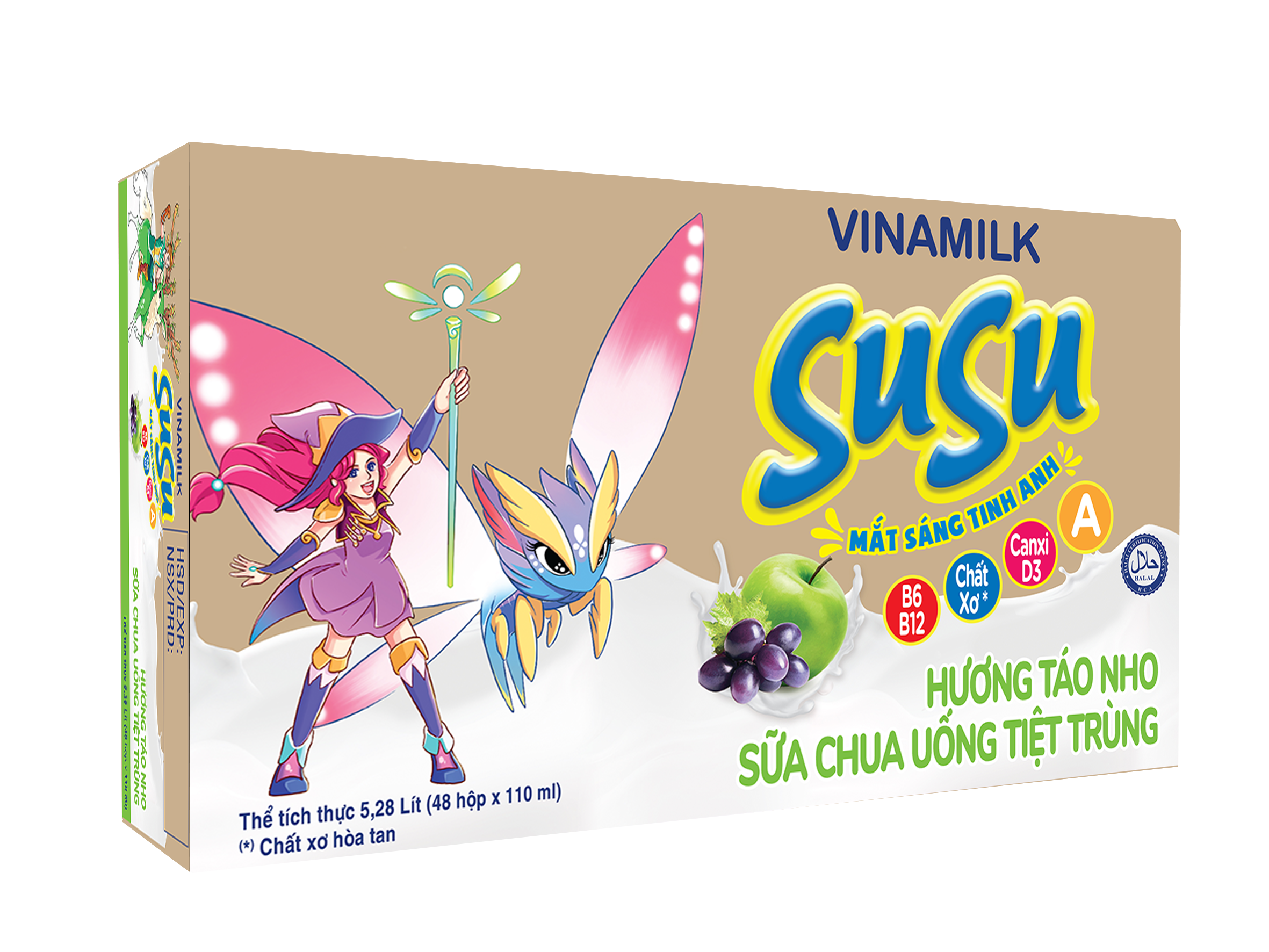- Bao bì "thần thú" cực vui nhộn. Sữa chua uống SuSu với vị ngọt béo, chua chua thơm ngon tuyệt vời, bổ sung vitamin A giúp bé mắt sáng tinh anh, chất xơ hòa tan (Prebiotic) hỗ trợ hệ tiêu hóa để bé luôn khỏe mạnh và năng động mỗi ngày. Thùng 48 hộp sữa chua uống hương táo nho SuSu 110ml hương táo nho thơm ngon đóng thùng lớn tiết kiệm