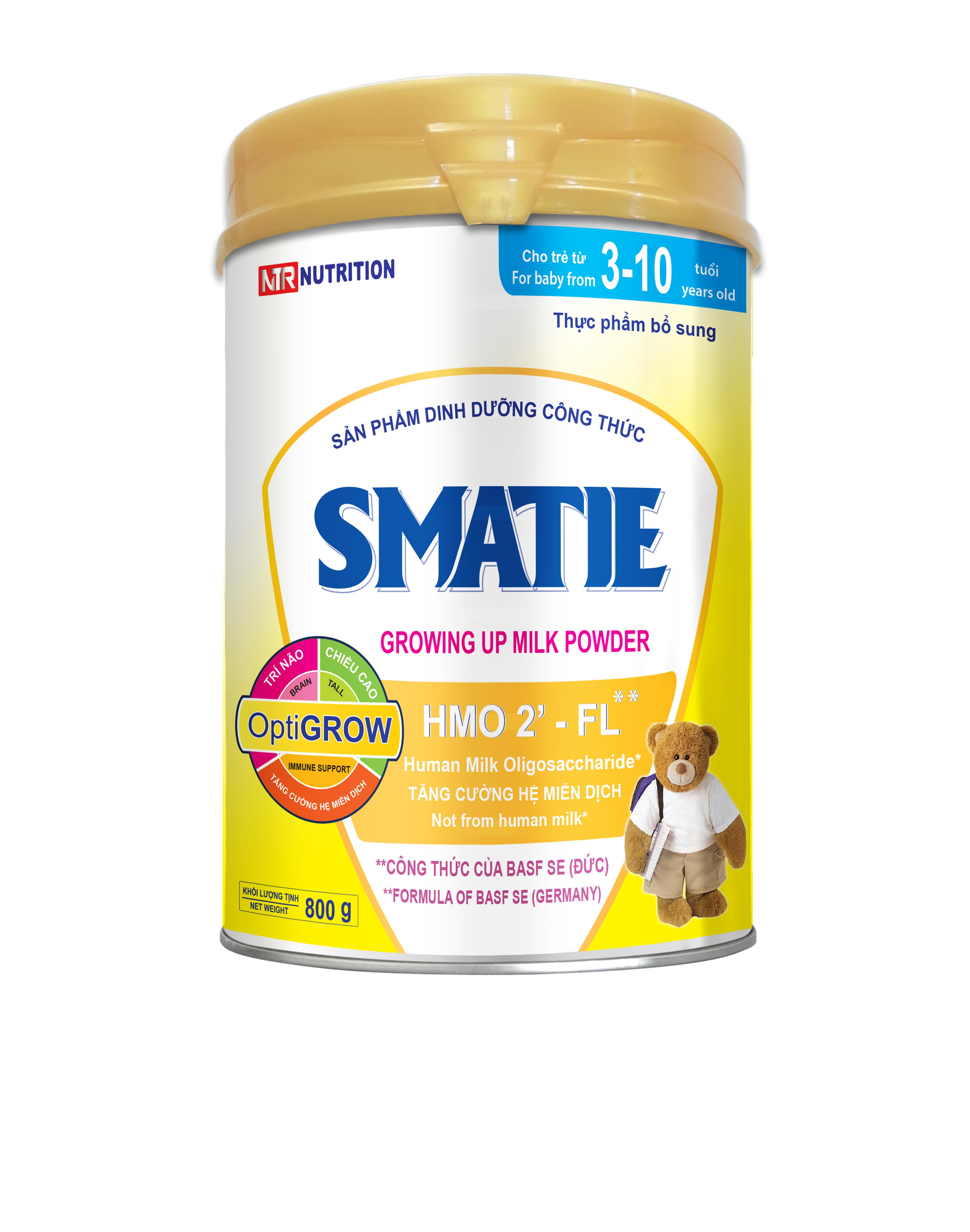 SẢN PHẨM DINH DƯỠNG CÔNG THỨC SMATIE CHO TRẺ TỪ 6-24 THÁNG TUỔI   Công thức HMO 2′-FL   TĂNG CƯỜNG HỆ MIỄN DỊCH   GIÚP BÉ PHÒNG CHỐNG CÁC BỆNH VỀ ĐƯỜNG TIÊU HOÁ VÀ HÔ HẤP   Tăng cường sức đề kháng, phòng ngừa các bệnh do vi khuẩn hay virus gây ra, và hấp thu tốt các dưỡng chất cho bé phát triển trí não, chiều cao tối đa    CÔNG THỨC CỦA BASF SE (ĐỨC)    Thông tin khác vui lòng xem trên nhãn bao bì của sản phẩm   Chú ý: Sữa mẹ là thức ăn tốt nhất cho sức khoẻ và sự phát triển toàn diện của trẻ nhỏ. Các yếu tố chống nhiễm khuẩn đặc biệt là kháng thể chỉ có trong sữa mẹ có tác dụng giúp trẻ phòng, chống bệnh tiêu chảy, nhiễm khuẩn đường hô hấp và một số bệnh nhiễm khuẩn khác.   Mùi vị thơm ngon gần giống với vị sữa mẹ, không quá ngọt, vị ngọt tự nhiên của sữa.  Sản phẩm không chứa các chất kích thích làm nhanh tăng trưởng ở trẻ.  Sản phẩm đạt chứng nhận của Sở Y Tế, dinh dưỡng đầy đủ cân đối cho sự phát triển toàn diện cách tự nhiên. Đặc biệt bổ sung hàm lượng HMO 2'-FL, thành phần miễn dịch tự nhiên có trong sữa mẹ. Đôi nét về thương hiệu SMATIE SMATIE có mặt tại thị trường Việt Nam với các sản phẩm Sữa công thức, Thực phẩm bổ sung dinh dưỡng, khăn ướt trẻ em, khăn ướt kháng khuẩn dùng cho cả da tay và mặt, và tã (bỉm) quần. SMATIE chủ yếu xuất khẩu cho các thị trường Châu Á, và Đông Âu, … SMATIE chính thức được phân phối tại Việt Nam từ năm 2017.