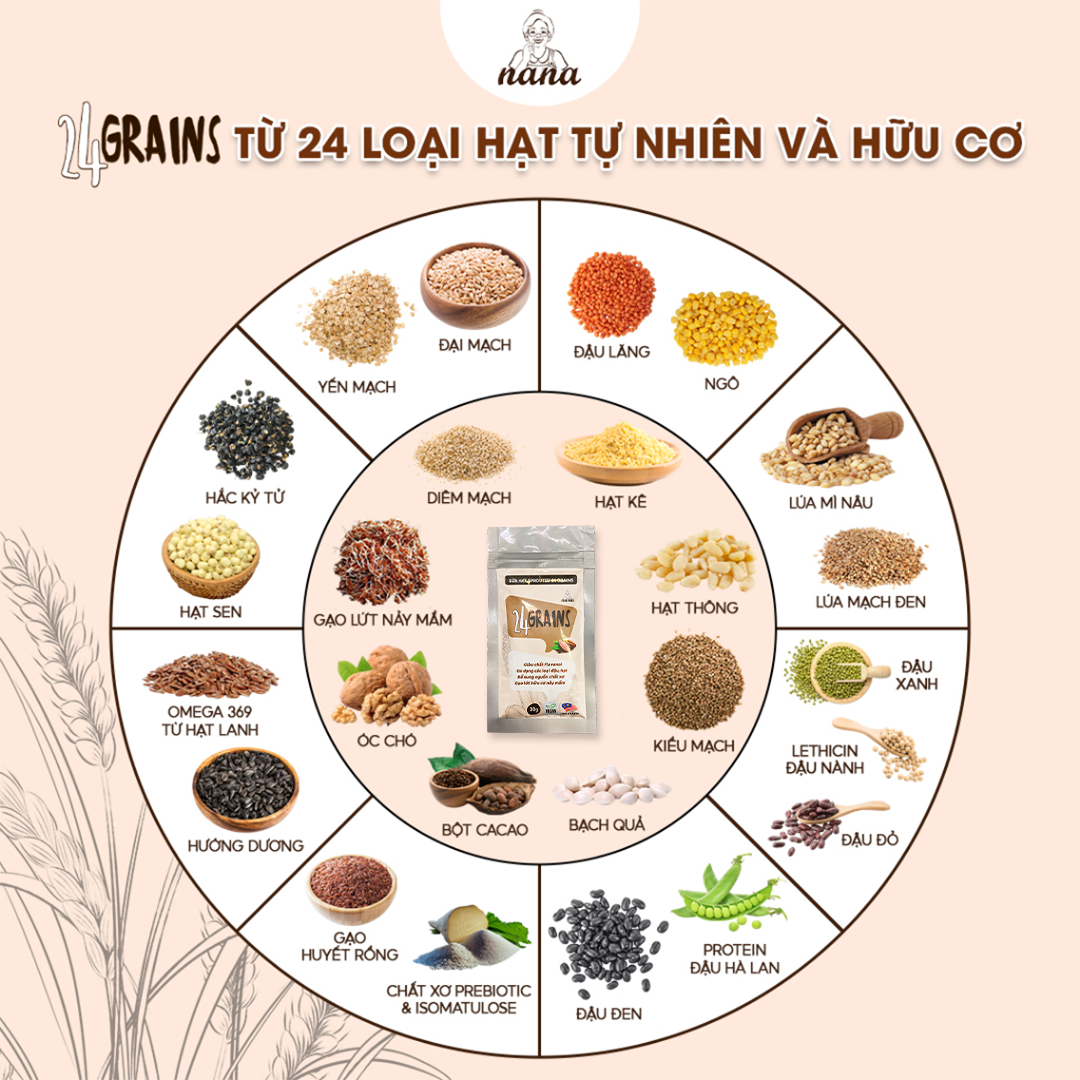 Omega có trong hạt óc chó, hạt thông, bạc quả của sữa 24GRAINS. Omega là dưỡng chất rất quan trọng cho sự hình thành và phát triển não bộ của trẻ. Trong omega có ALA, DHA và EPA. ALA là một chất béo CHỈ CÓ TRONG THỰC VẬT mà omega động vật không có, khi cơ thể hấp thu sẽ chuyển hóa thành DHA và EPA, hỗ trợ não bộ phát triển tối ưu.