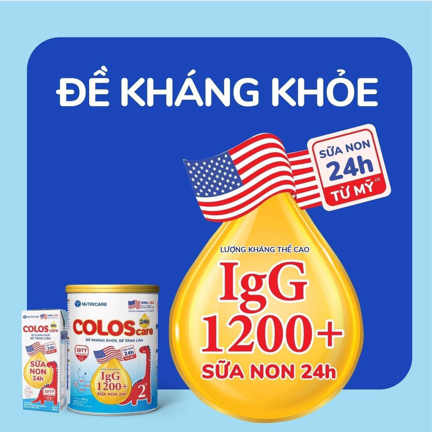 ColosBaby IQ - công thức khoa học, hương vị thanh nhẹ tự nhiên với sữa non ColosIgG 24h nhập khẩu độc quyền từ Mỹ, bổ sung hàm lượng kháng thể IgG tự nhiên cao, kết