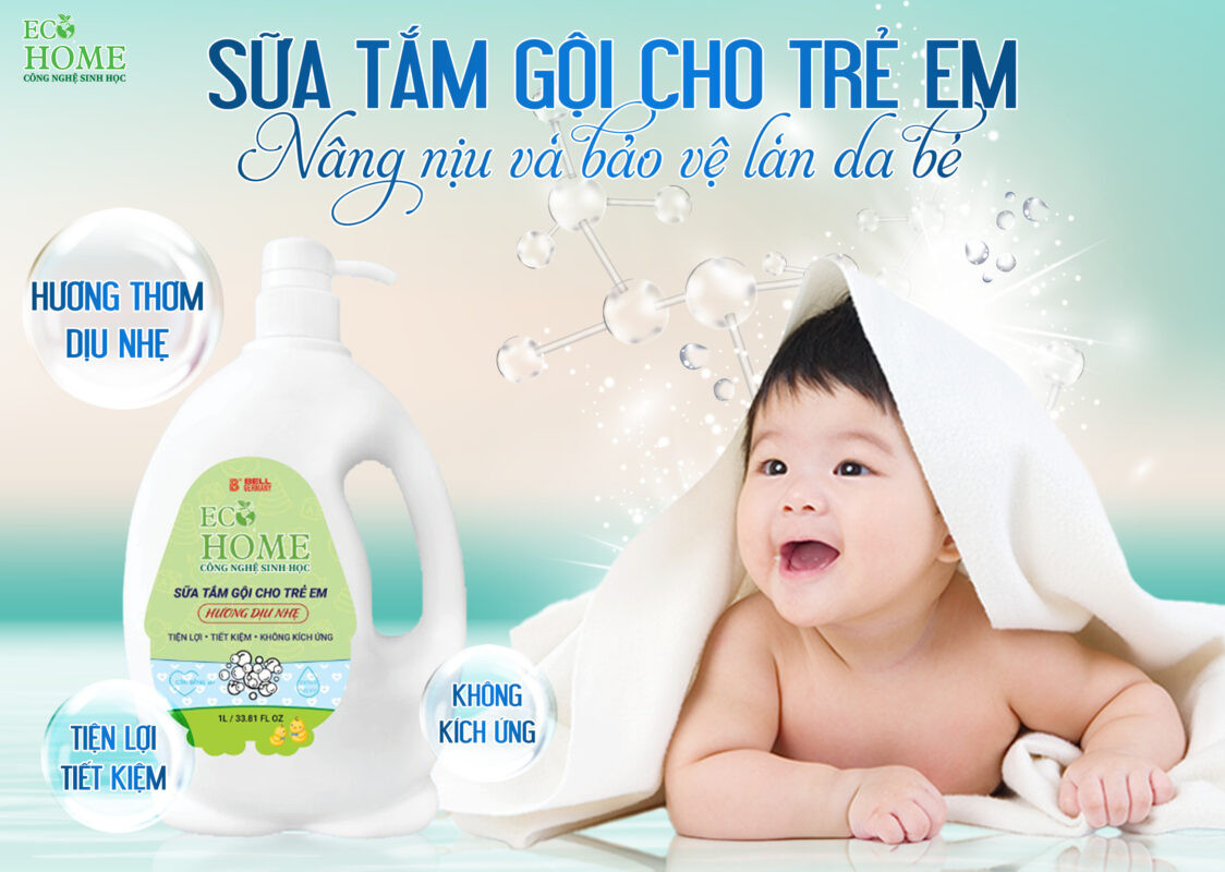 ✨Sữa Tắm Gội Trẻ Em Ecohome Công Nghệ Sinh Học Bảo Vệ Nuôi Dưỡng Da Và Tóc Bé Vượt Trội 1000ml