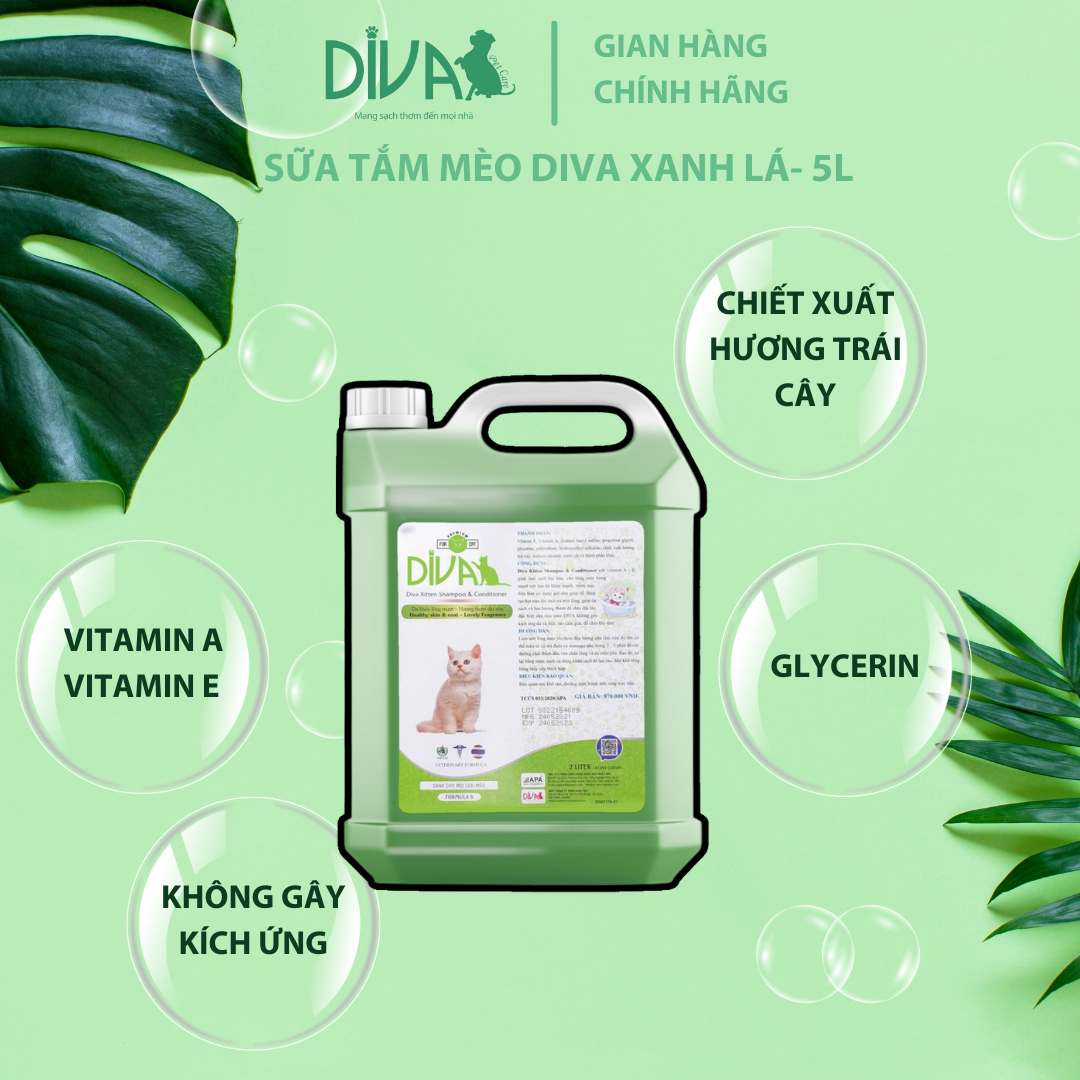 ✨SỮA TẮM MÈO DIVA XANH LÁ 5L (DIVA FORMULA 6)