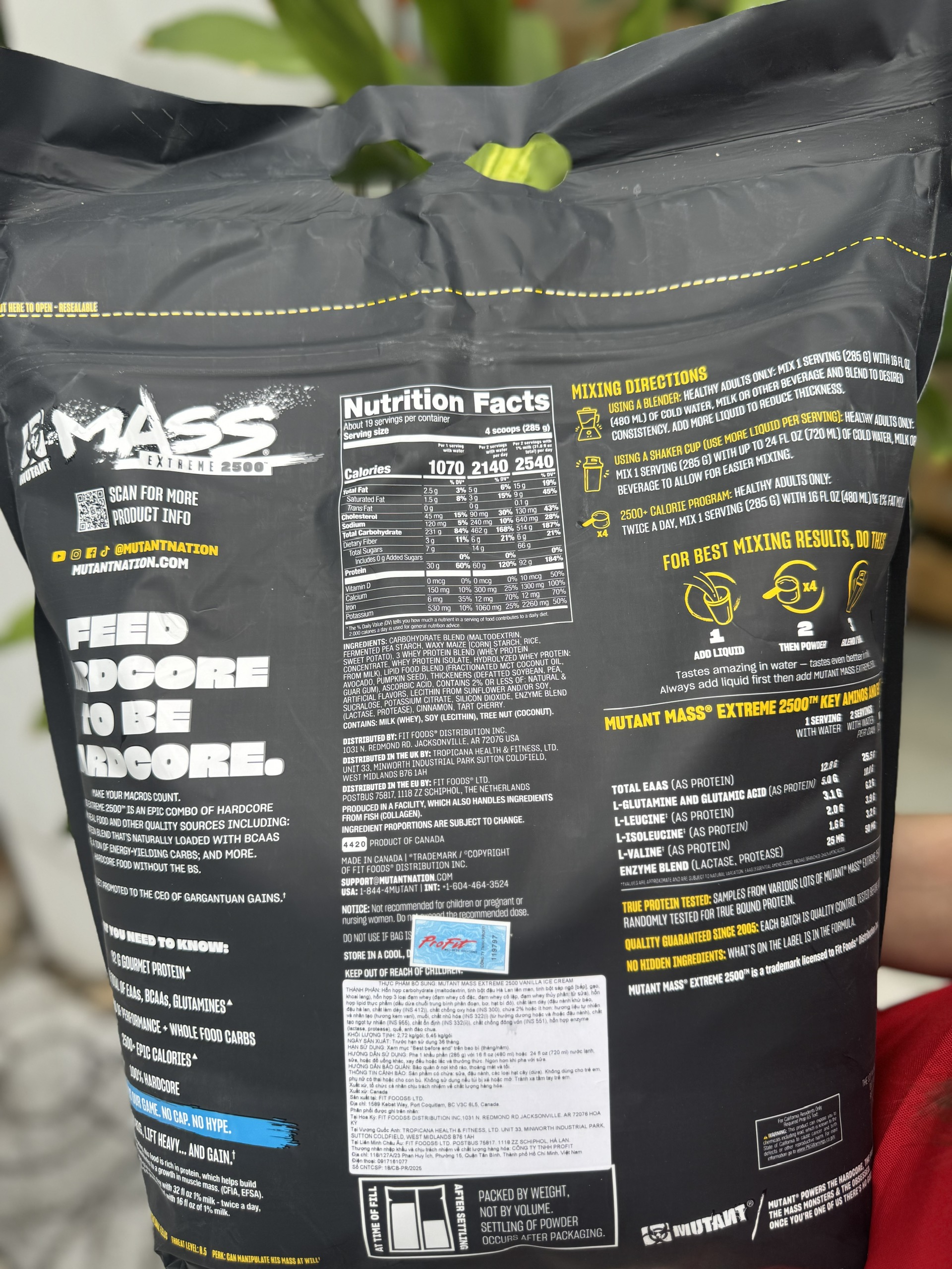 ✨Sữa Tăng Cân Mutant Mass Extreme 2500 12Lbs – Túi 5.45Kg – Bao Bì Mới