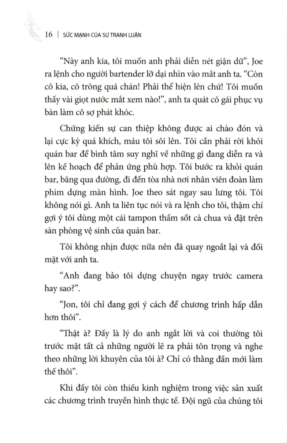 Sức Mạnh Của Sự Tranh Luận sẽ hướng dẫn bạn phương pháp này thông qua nhiều ví dụ thực tiễn trong cuộc đời và sự nghiệp của chính tác giả cũng như cuộc đời của những người khác, những người đủ can đảm để đương đầu với mâu thuẫn và đã cải thiện cuộc sống, đạt được thành công.