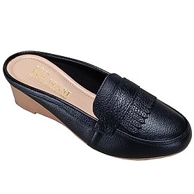 Giày Sục Nữ Giày Đế Xuồng Da Bò Thật Cực Mềm Gót Cao 5cm Evelynv 5P1816 (Đen)