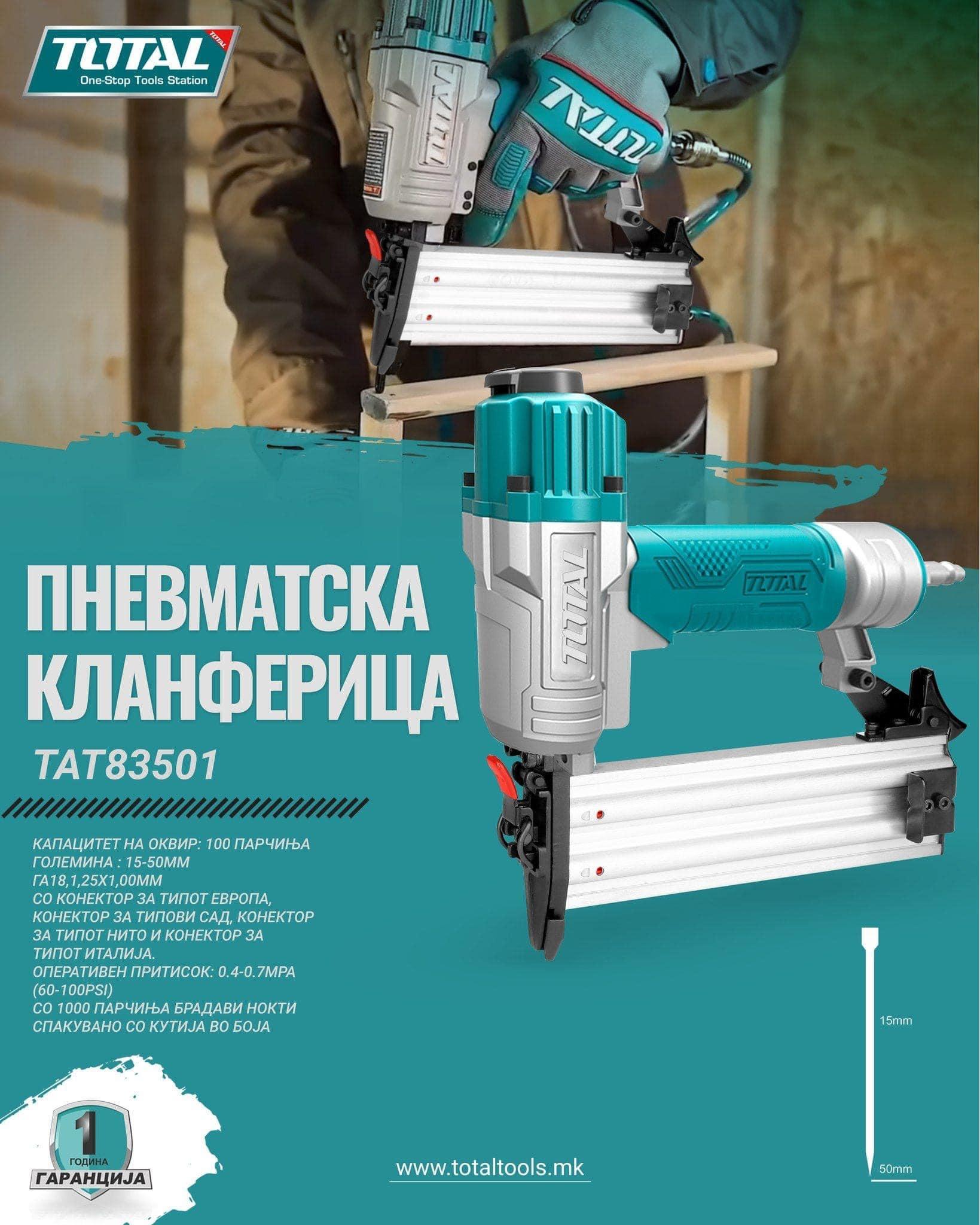 Giới thiêu súng bắn đinh dùng hơi TOTAL, Đinh thẳng và đinh U. TAT83301-3, TAT8131-3.
