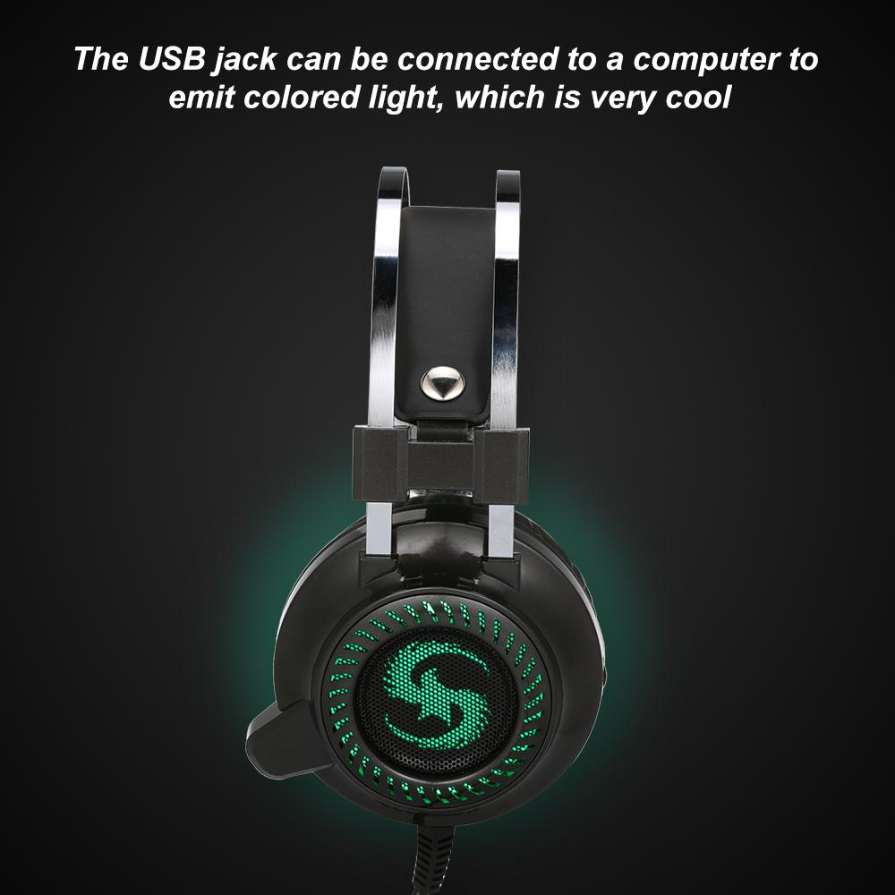 Overview: This headset is ideal for gaming purposes, with clear sound, gaming headphones with closed earmuffs, covering the entire ear, metal-mounted headband, soft leather PU leather cushion head pad, light weight, comfortable to wear, with High quality microphone. Give you a comfortable wearing experience. Features: [Quality Sound]T2 gaming headset with Clear sound operating strong brass, acoustic positioning precision, perfect for playing pc games, listening music and delivers clear sound. [Noise Canceling]Closed earcup design in Gaming Headset, covers your entire ear and cuts out external sound very effectively. Headset integrated mic with super noise-reduction function, can pick up sounds with great sensitivity and remove the noise. [Comfortable]Light weight and Comfortable wearing. Metal hanging type headband, Soft skin PU Leather cushions head-pad, ear-pad and adjustable for wearing comfort and long time use. [High Quality Microphone]The gaming mic in our headphone is high sensitive and durable. It's crystal clear and well-grounded so it doesn't crackle . Long flexible mic with LED light design very useful and portable. [Easy to Use]A USB Jack is necessary for powering the LED lights, the two audio connectors for earpieces and microphone are standard inputs for Desktop PCs. The USB jack can be connected to a computer to emit colored light, which is very cool. Specification: Headphone type: Gaming headphones Speaker diameter: 50mm Sensitivity: 112dB/mW Impedance: 32Ω Color: Gold, Grey optional Frequency response range: 20-20000Hz Wearing method: wearing ear protection Headphone type: wired Microphone pointing: omni-directional Plug diameter: dual 3.5mm+USB Headphone plug type: in-line type Headphone output source: PC Cable length: 2.3 Meters Package Size: 25 20 13.2cm/9.84 7.87 5.2in Package Weight: 532g/18.77oz Package List: 1 * Headset