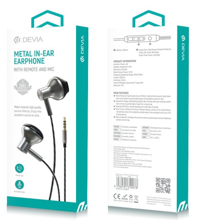 ✨Tai nghe Devia Metal In-Ear kèm điều khiển và mic - Hàng chính hãng
