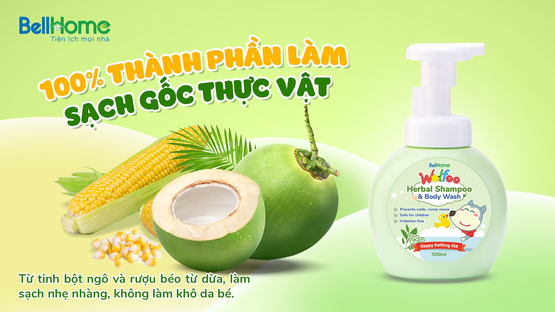 Tắm gội thảo dược Wolfoo BellHome - Dòng tắm gội 100% thành phần gốc thực vật