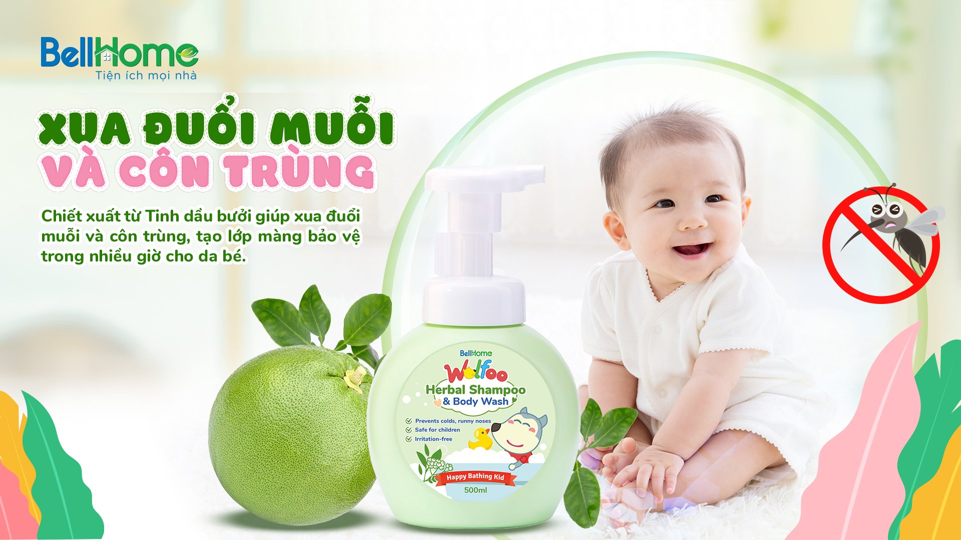 Tắm Gội Thảo Dược Wolfoo Baby Bell Home chính là lựa chọn thông minh của cha mẹ dành cho bé - vừa giúp bé sạch sẽ, dễ chịu vừa phòng và chữa bệnh cảm cúm