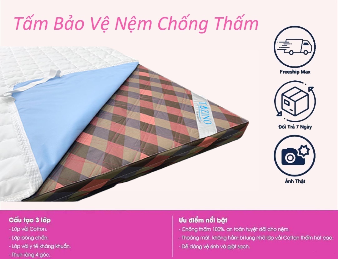 ✩ CHỨC NĂNG: nhằm ngăn các chất bài tiết của cơ thể (mồ hôi, ) thấm trực tiếp vào nệm, giúp nệm luôn sạch sẽ, không có mùi hôi, hạn chế vi khuẩn phát sinh