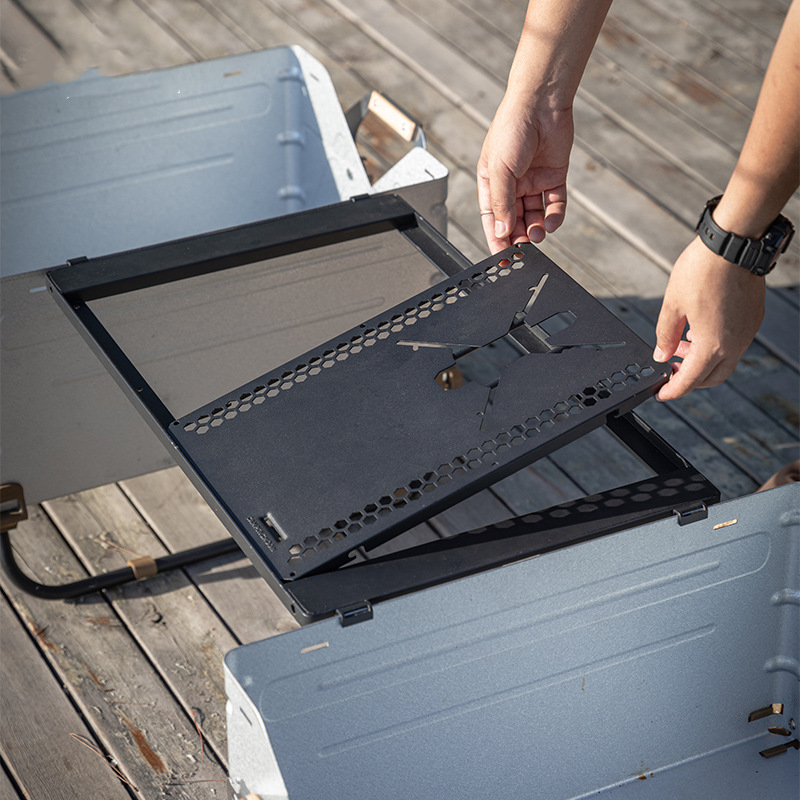 TẤM PALLET CHO BẾP NHỆN ĐA NĂNG CAMPINGMOON GT-36 Tấm pallet cho bếp nhện đa năng Campingmoon GT-36 kết hợp linh hoạt, không giới hạn các mẫu bàn, kệ, thùng cắm trại giúp mở rộng không gian đun nấu ngoài trời của các buổi cắm trại, dã ngoại, du lịch. Tầm pallet chất liệu sắt nguyên khối được cắt CNC, mạ Titanium đen chống mài mòn, dễ lau chùi, chịu được nhiệt độ cao.