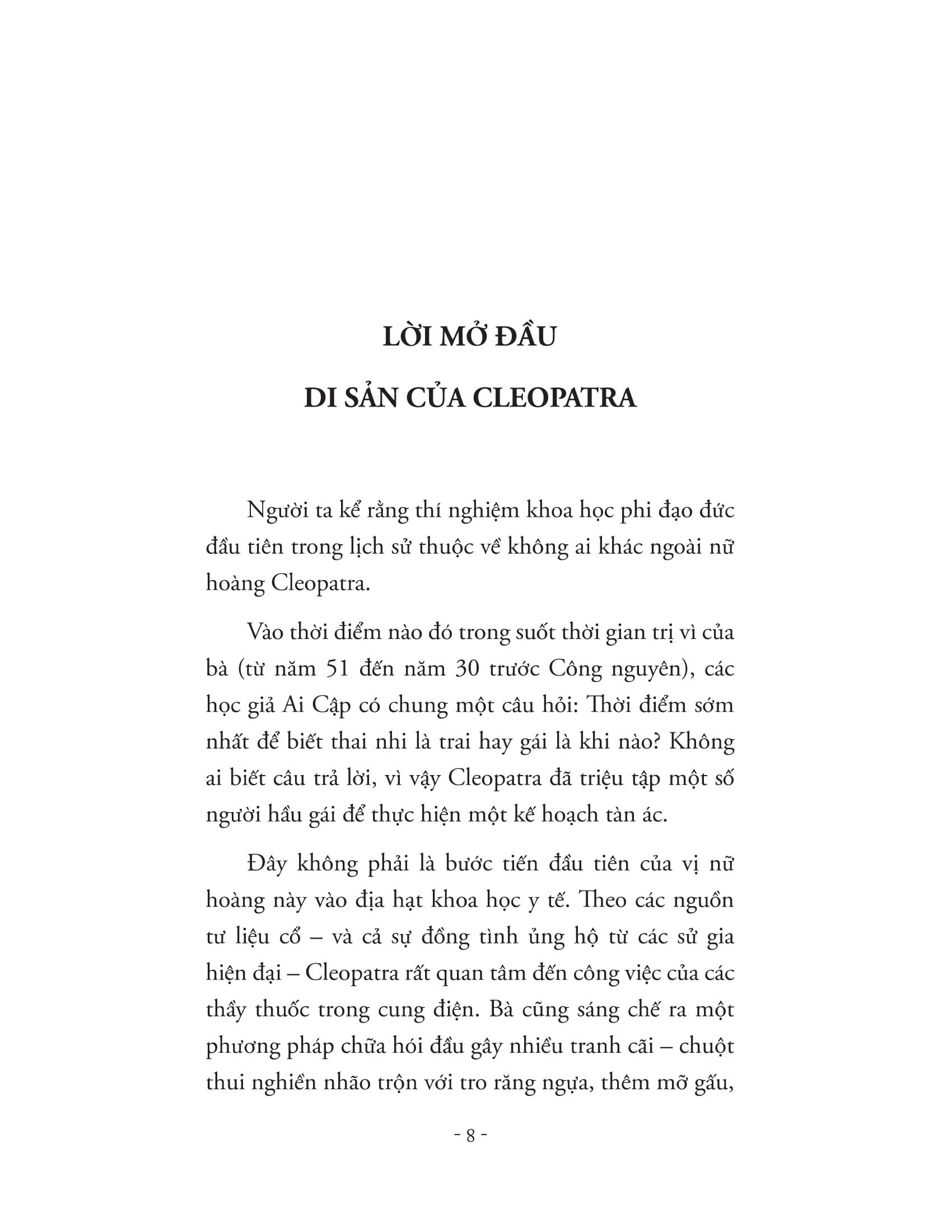 Trong cuốn sách này, tác giả Sam Kean sẽ dẫn lối người đọc một cách thành thạo hệt như một hướng dẫn viên du lịch lâu năm trải qua chuyến hành trình suốt hai nghìn năm lịch sử, bắt đầu từ những hành động đen tối của Cleopatra ở Ai Cập cổ đại.