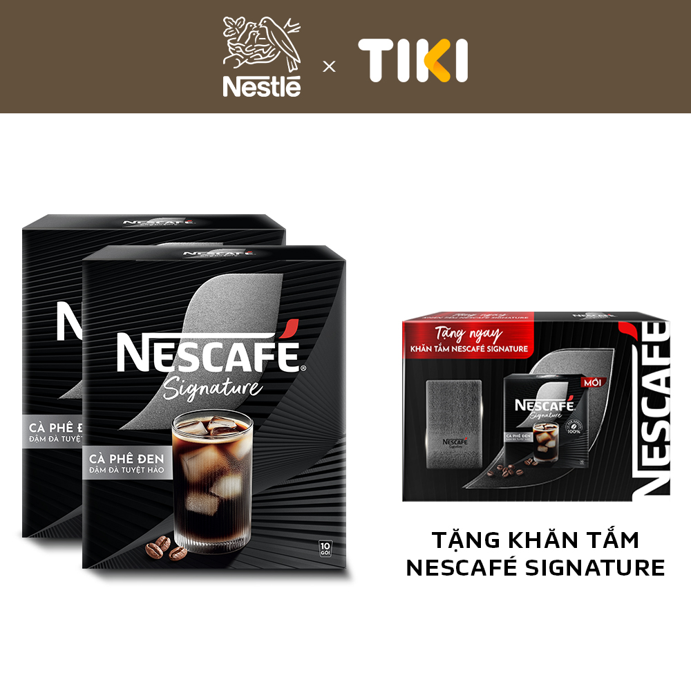 ✨[Tặng 01 Khăn tắm NESCAFÉ Signature] Combo 2 hộp Cà phê đen hòa tan NESCAFÉ Signature Hộp 10 gói ĐẬM ĐÀ TUYỆT HẢO