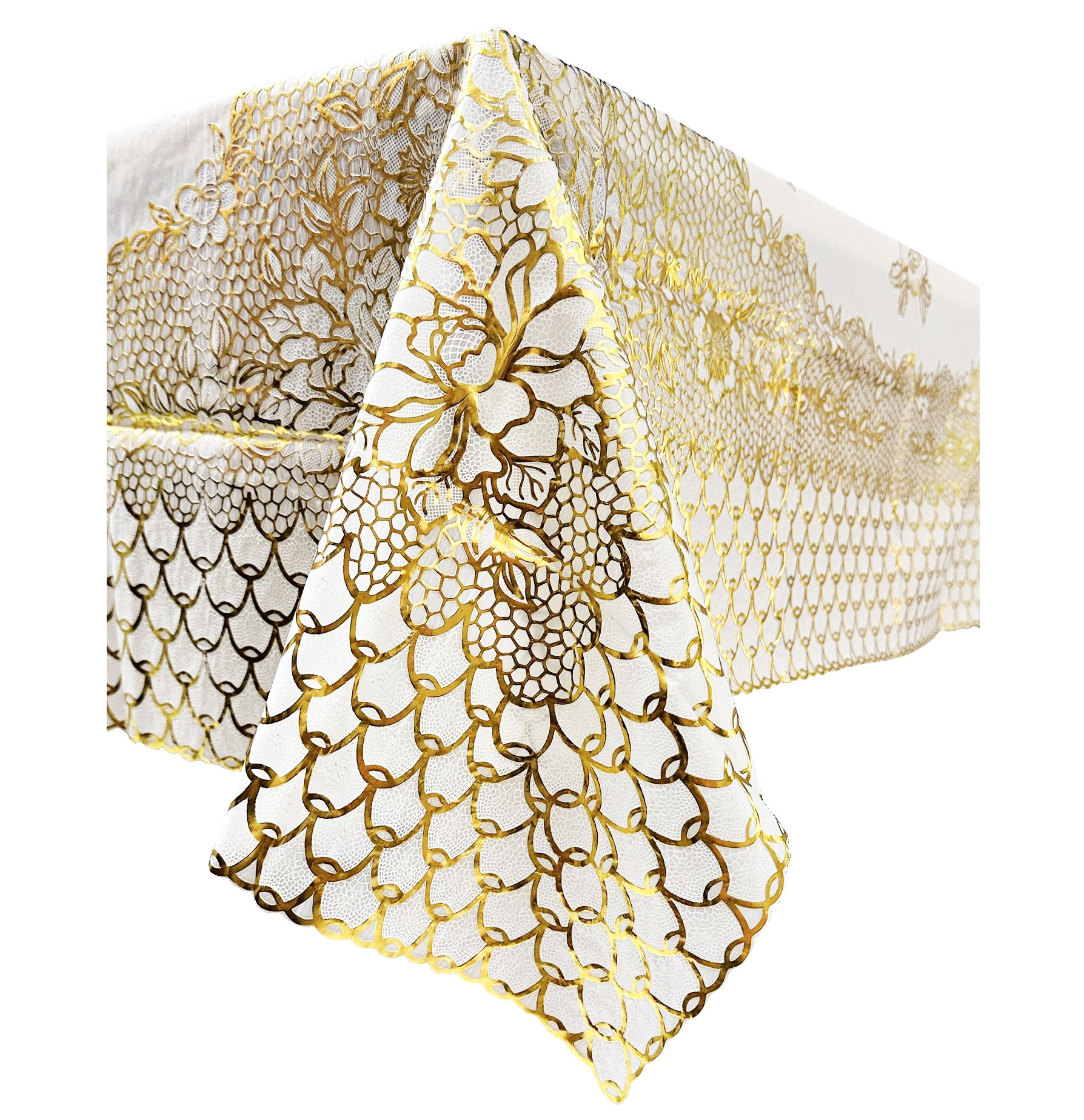 ✨[Tặng 1 lót phần ăn] Khăn Trải Bàn WLG.751 (137x180 cm), hoa văn phủ nhũ vàng, nhựa PVC dẻo, không thấm nước, dễ vệ sinh