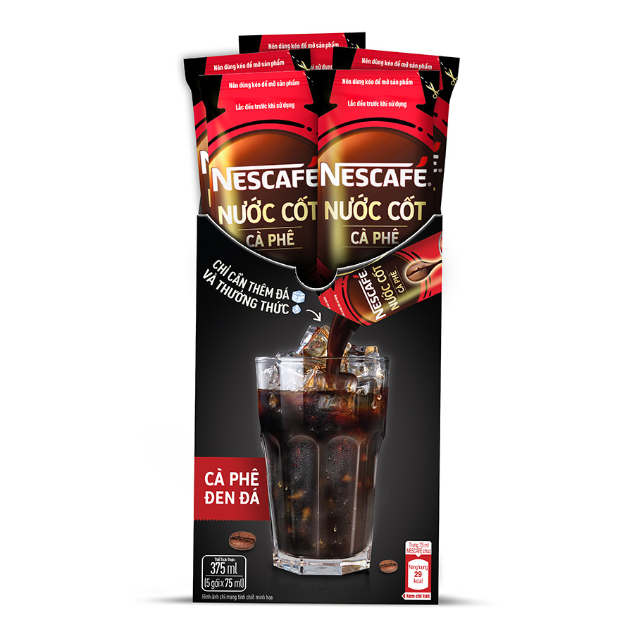 BỘ SẢN PHẨM BAO GỒM 04 Hộp nước cốt cà phê NESCAFÉ - CÀ PHÊ ĐEN ĐÁ (4 hộp x 5 gói) 01 Ly thuỷ tinh Fuji cao cấp THÔNG TIN CHI TIẾT 1. Nước