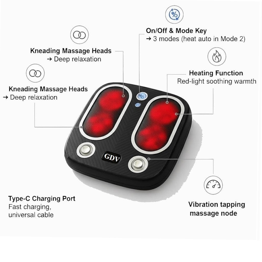 - Phụ nữ thường xuyên đi giày cao gót II. ĐẶC ĐIỂM NỔI BẬT Thay vì sử dụng các loại "bồn ngâm chân" hay các "máy ngâm chân massage" có dây điện rườm rà >>> GDV đã cho ra mắt sản phẩm "Máy Massage Bàn Chân Không Dây GDV YM-SU7" đáp ứng đủ các tiêu chí của khách hàng. Hơn nữa, Máy Massage Bàn Chân Không Dây GDV YM-SU7 cải tiến hơn nhờ công nghệ chườm ấm bằng ánh sáng đỏ - loại ánh sáng tốt cho việc lưu thông tuần hoàn máu. III. NHỎ GỌN - KHÔNG DÂY