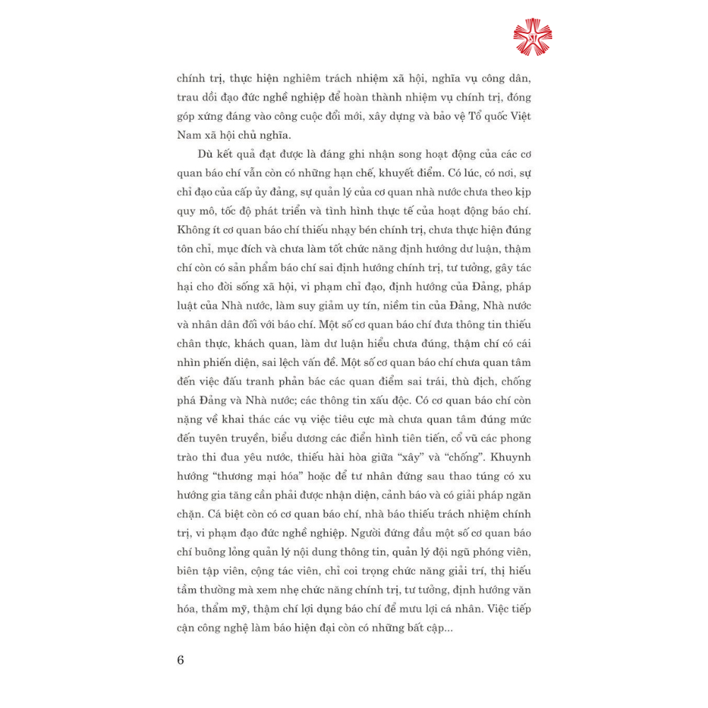 Mua tại TiktokCuốn sách tập hợp các bài tham luận trong Hội thảo khoa học “Tăng cường công tác xây dựng Đảng trong các cơ quan báo chí”, do Ban Tuyên giáo Trung ương Đảng chủ trì, phối hợp với Đảng uỷ Khối các cơ quan Trung ương, Báo Nhân Dân, Đài Truyền hình Việt Nam tổ chức. Nội dung cuốn sách gồm 2 phần, phản ánh khá đầy đủ, chân thực về công tác xây dựng Đảng trong các cơ quan báo chí, đề xuất những giải pháp thiết thực nhằm đáp ứng yêu cầu lãnh đạo, chỉ đạo hoạt động báo chí trong tình hình hiện nay.