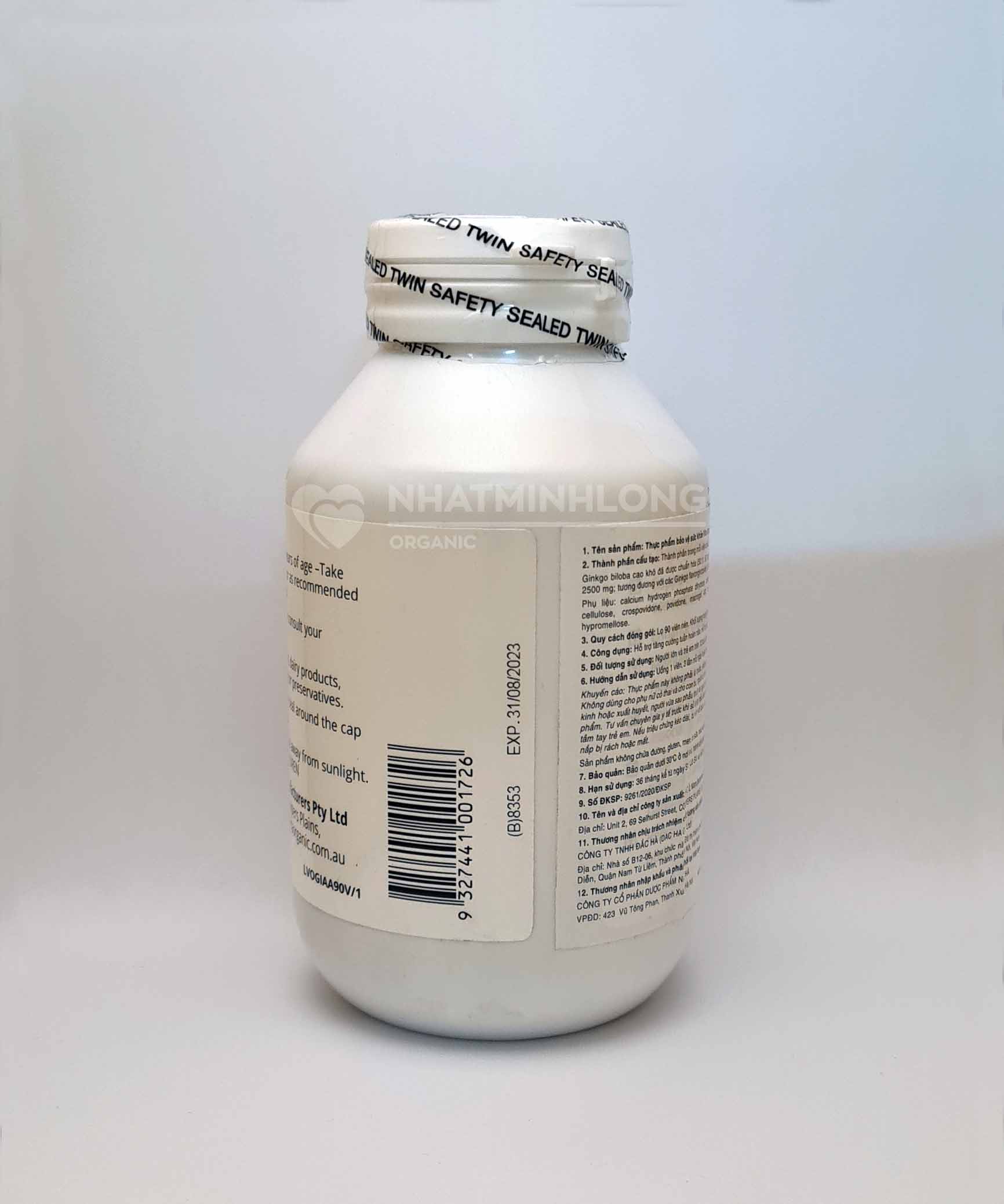 1. Tên sản phẩm: Tăng cường tuần hoàn não, cải thiện trí nhớ và khả năng tập trung Vita Organic Ginkgo Biloba 2500 2. Thành phần cấu tạo: Thành phần trong mỗi viên chứa: Ginkgo biloba