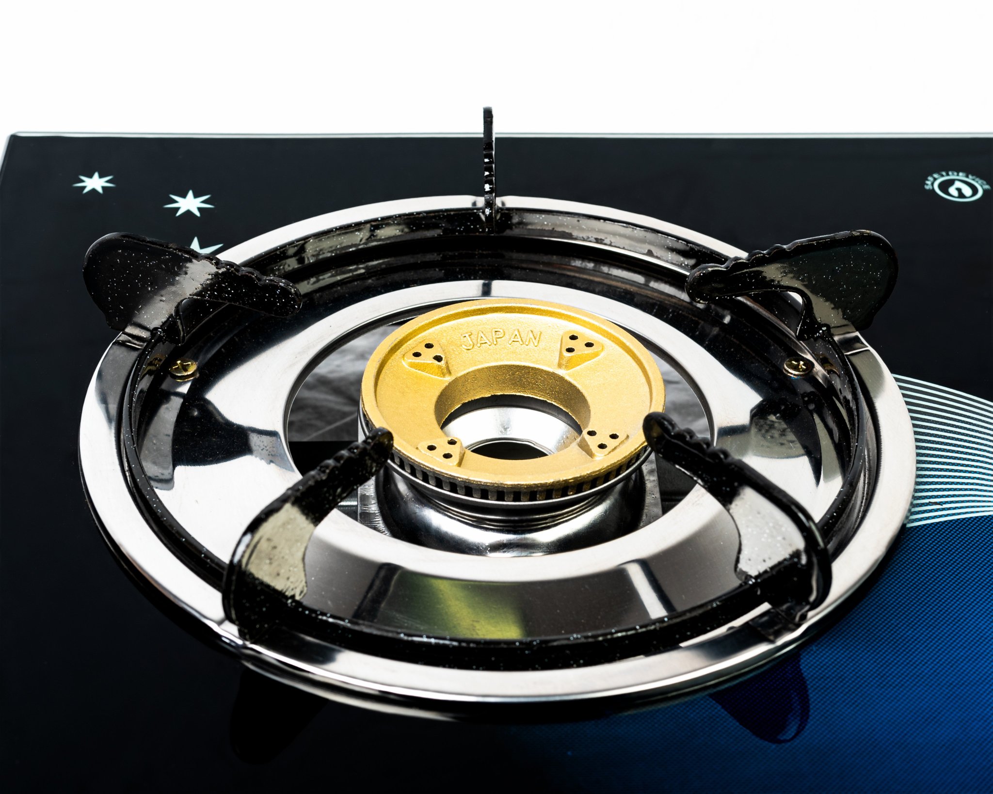 * Mặt kiếng cao cấp chịu lực, chịu nhiệt, thiết kế hoa văn sang trọng; - Thân bếp bằng inox, cao 100 mm; - Kiềng thép sơn tĩnh điện, có chắn gió; - Điếu loe