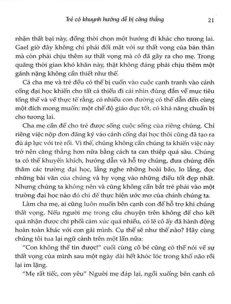 Sự tức giận ở trẻ em là một thử thách đầy mệt mỏi. Cơn giận dữ của một đứa trẻ có thể mang đến cho cha mẹ nhiều giây phút căng thẳng và nặng nề. Là cha mẹ, chúng ta lo lắng và đôi khi trong lúc tuyệt vọng, chúng ta nói cũng nhưlàm những điều mà trước khi có con chúng ta không bao giờ tưởng tượng được ra... Việc phải đối mặt với một đứa trẻ giận dữ là một thử thách to lớn Xử lí sự tức giận là việc cực kì khó. Trẻ con tức giận rất khó giải quyết. Thật mệt mỏi khi phải đối phó với những cơn phẫn nộ triền miên, nhất là khi cha mẹ bị quá tải với hàng đống việc cần hoàn thành mỗi ngày. Khi một đứa trẻ tức giận và hung hăng, cha mẹ cũng có thể thấy lo lắng về tương lai của đứa trẻ đó. Một điều khiến cho vấn đề trở nên phức tạp hơn là sự tức giận không bao giờ xuất hiện đơn lẻ. Một đứa trẻ có thể luân phiên giữa tức giận và buồn bã, giữa tức giận và xấu hổ. Thậm chí có thể vừa tức giận vừa vui sướng. Nhưng phản ứng cảm xúc của cha mẹ vẫn xảy ra bất chấp thực tế là đằng sau sự tức giận, trẻ có thể đang bị tổn thương. Khi bị dồn đến giới hạn chịu đựng, chúng ta phản ứng lại sự tức giận của con bằng cách trở nên tức giận. Sau đó, có thể chúng ta sẽ chỉ trích, chế nhạo, xa lánh con hoặc buông xuôi. Sự tức giận của con cái cũng có thể khiến chúng ta tuyệt vọng. Giải pháp là biết nhiều hơn về cơ chế của sự tức giận Đằng sau hành vi hung hãn thường ẩn giấu cảm giác dễ tổn thương. Một đứa trẻ giận dữ thường là một đứa trẻ đang bối rối, xấu hổ, thất vọng haojwc cảm thấy mình nhỏ bé, ngu ngốc hay kém cỏi. Sự tức giận của trẻ có thể là biểu hiện của nỗi buồn, sự cô đơn hoặc sợ hãi. Là người lớn, bạn cần cảm nhận thức được cơn giận dữ cực đoan của trẻ có thể gợi lên trong bạn cảm xúc gì, và bạn cần được hỗ trợ để biết cách kiểm soát cảm xúc của chính mình - những cảm xúc có thể ngăn cản bạn thực hiện nhiệm vụ quan trọng là trở thành điểm tựa tinh thần cho con. Cuốn sách này cung cấp cho bạn tất cả những gì cần biết về sự tức giận và hung hăng của con mình Cuốn sáchTrẻ Cáu Cha Mẹ Gắtsẽ làm sáng tỏ sự tức giận, nhắc nhở mọi người lí do tại sao nó lại là một cảm xúc quan trọng và cần thiết. Sự tức giận có một vai trò xã hội rất quan trọng giúp chúng ta tạo ta các ranh giới và bảo vệ chính mình. Cuốn sách này cung cấp cho bạn tất cả những gì cần biết về sự tức giận và hung hăng của con mình. Trọng tâm của cuốn sách không phải là cho con bạn bất cứ thứ gì chúng muốn, cũng không phải là dung túng cho những hành vi hung hãn. Mà sẽ chỉ cho bạn một cách tiếp cận mới để duy trì ranh giới lành mạnh có thể giúp bạn thiết lập các giới hạn một cách hiệu quả, đồng thời hiểu được cảm xúc của con mình. Bạn cần nhớ rằng, việc hiểu được cảm xúc của bản thân và con cái là chìa khóa giúp bạn thành công khi thiết lập các giới hạn.