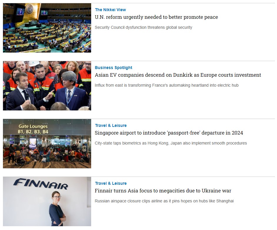 Mỗi tuần, Nikkei Asia xuất bản hơn 16,000 ấn phẩm đến tay độc giả của 30 quốc gia. Nikkei là thương hiệu báo tài chính uy tín và lớn nhất thế giới, mỗi ngày tại Nhật Bản phát hành 4 triệu bản. Tập đoàn còn sở hữu các đầu báo uy tín khác như Financial Times, Dealstreet Asia,