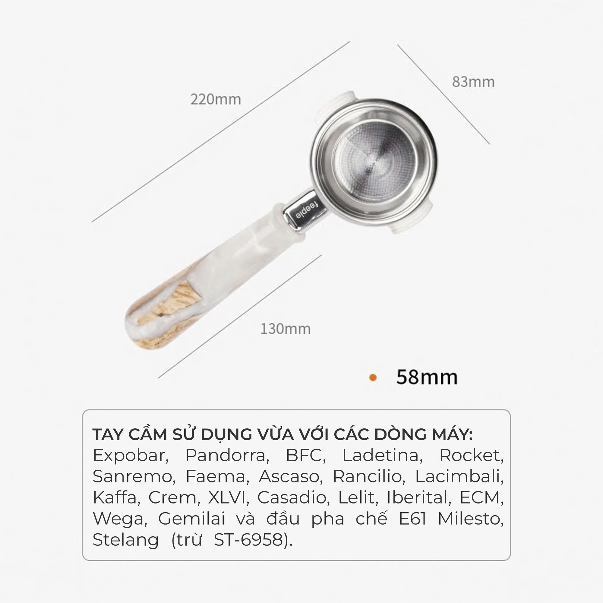 TAY CẦM ESPRESSO KHÔNG ĐÁY VÂN GỖ TỰ NHIÊN FEEPIE Sự kết hợp tuyệt vời giữa gỗ óc chó và nhựa cao cấp mang đến cho bạn trải nghiệm pha chế espresso đẳng cấp. Tay