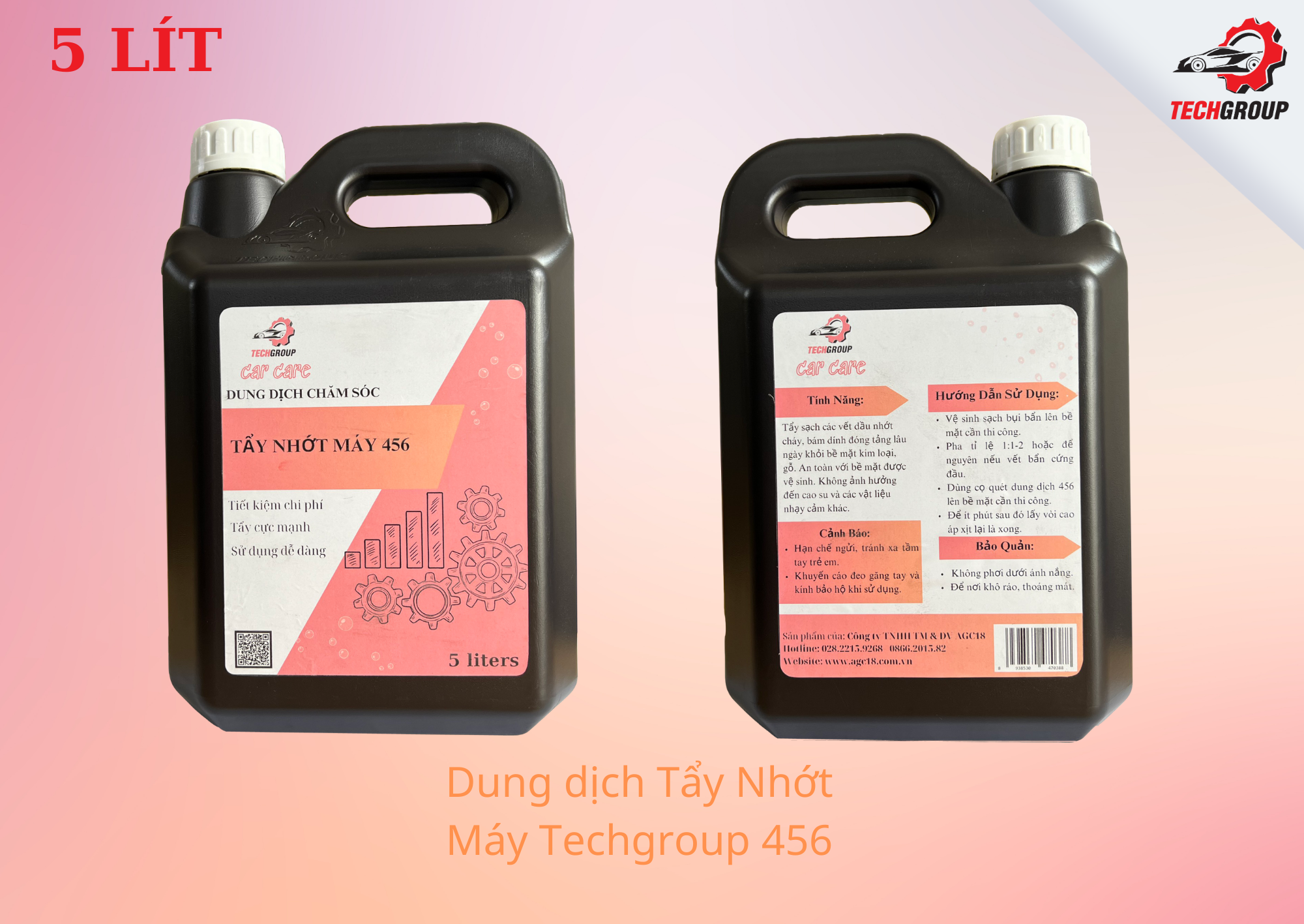 Tẩy nhớt máy Techgroup 456 (5 Lít ) 1. Tính năng: - Tẩy sạch các vết dầu nhớt cháy, bám dính đóng tảng lâu ngày khỏi bề mặt kim loại. - Có tác dụng làm