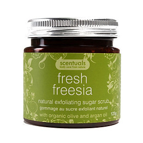 - Tẩy Tế Bào Chết Hoa Lan Fresh Freesia Natural Exfoliating Sugar Scrub Scentuals (125g) là sản phẩm với chiết xuất từ đường tan cùng bơ ca cao, tinh dầu ngọc lan,… giúp loại bỏ