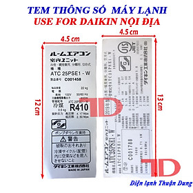 ✨Tem thông số dành cho máy lạnh DAIKIN nội địa