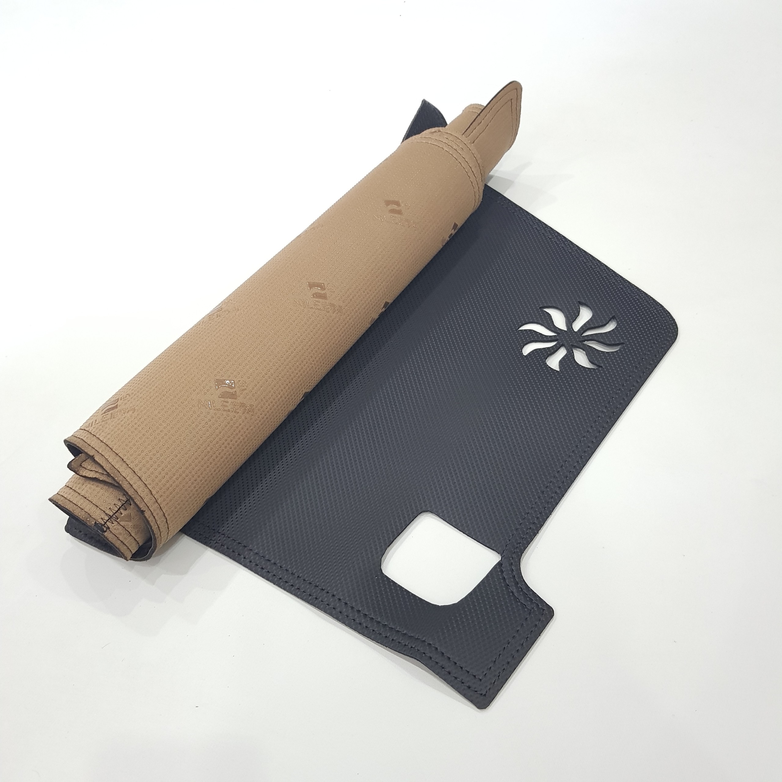 Đặc điểm: Chất liệu da cao cấp, Có đế chống trượt, Màu da vân các bon đen mịn màng Chất Thảm chống nắng taplo Da lượng như hình