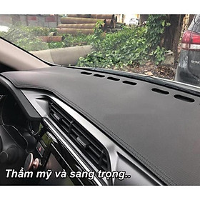 Đặc điểm: Chất liệu da cao cấp, Có đế chống trượt, Màu da vân các bon đen mịn màng Chất Thảm chống nắng taplo Da lượng như hình