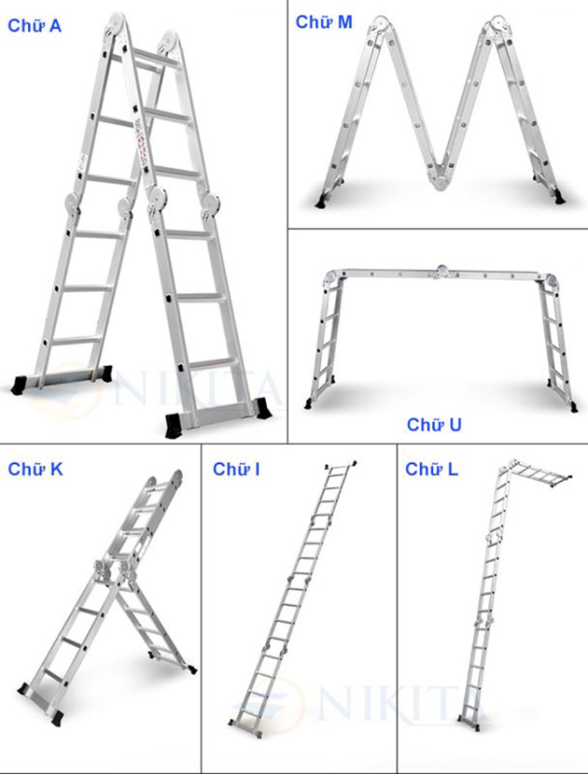 Mua tại TiktokThang nhôm gấp 4 khúc NIK44A & NIK44 Thang nhôm gấp 4 khúc khóa sập tự động là loại thang được thiết kế với 4 khúc thang riêng biệt, được nối với nhau bằng hệ thống chốt khóa sập tự động và các khớp nối. Thang có thể gấp gọn lại giúp người dùng dễ dàng mang vác, di chuyển. Cấu tạo:Thang nhôm gấp 4 khúc khóa sập tự động có cấu tạo gồm các bộ phận chính sau: ️1: Bậc thang: Bậc thang được làm từ hợp kim nhôm cao cấp, có độ bền cao, chịu lực tốt. Bậc thang có chiều rộng và khoảng cách giữa các bậc phù hợp với người sử dụng, giúp người dùng leo lên xuống an toàn và thoải mái. ️2: Chốt khóa sập tự động: Chốt khóa sập tự động được làm từ hợp kim thép không gỉ, có độ bền cao. Chốt khóa tự động giúp thang được cố định chắc chắn, tránh tình trạng thang bị sập khi sử dụng. ️3: Khớp nối: Khớp nối được làm từ hợp kim thép không gỉ, có độ bền cao. Khớp nối giúp các khúc thang được nối với nhau một cách chắc chắn, đảm bảo an toàn cho người sử dụng. ️4: Chân thang: Chân thang được làm từ cao su có các rãnh chống trượt, giúp thang đứng vững trên các bề mặt không bằng phẳng. => Ưu điểm: Thang nhôm gấp 4 khúc khóa sập tự động có những ưu điểm nổi bật sau: 1: Thiết kế linh hoạt: Thang có thể gấp gọn lại giúp người dùng dễ dàng mang vác, di chuyển. Thang có thể sử dụng được ở nhiều vị trí khác nhau, phù hợp với nhiều công việc khác nhau. 2: Chất lượng cao: Thang được làm từ hợp kim nhôm cao cấp, có độ bền cao, chịu lực tốt. Chốt khóa sập tự động và khớp nối được làm từ hợp kim thép không gỉ, có độ bền cao, đảm bảo an toàn cho người sử dụng. 3: An toàn: Thang có thiết kế chắc chắn, các khớp nối được cố định chắc chắn, tránh tình trạng thang bị sập khi sử dụng. Chân thang có các rãnh chống trượt, giúp thang đứng vững trên các bề mặt không bằng phẳng. => Ứng dụng