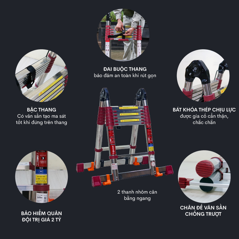 - Mở rộng thang hết cỡ chốt an toàn tránh trường hợp leo lên bị trượt.