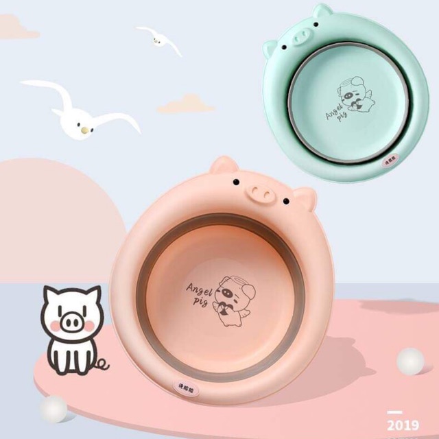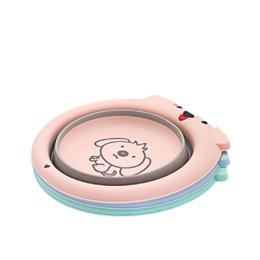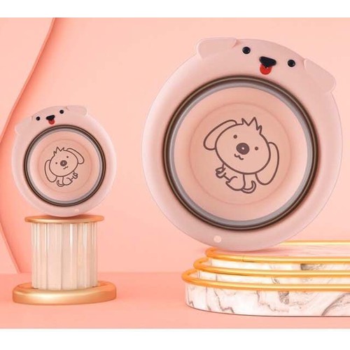 – Thau rửa mặt cho bé gấp gọn hình chú chó có vành chậu dày giúp mẹ cầm nắm chậu dễ dàng hơn
