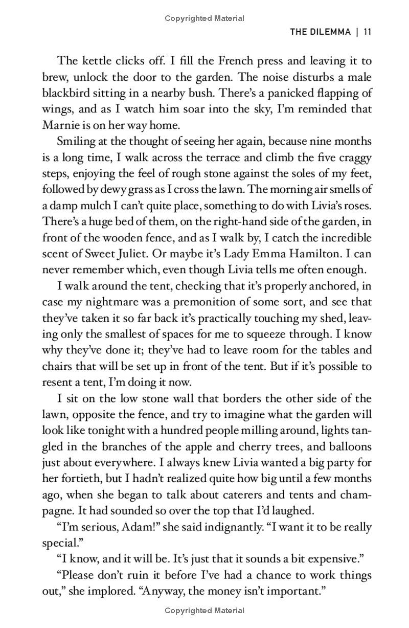 Adam, meanwhile, has his own surprise for Livia: he's arranged for Marnie to secretly fly back for the party. But before Marnie arrives, Adam hears some terrible news. Now he too is faced with a dilemma: Does he share what he's learned with his wife? Is hiding the truth the same as telling a lie? And how far are Adam and Livia willing to go to protect the ones they love-and give each other a last few hours of happiness?