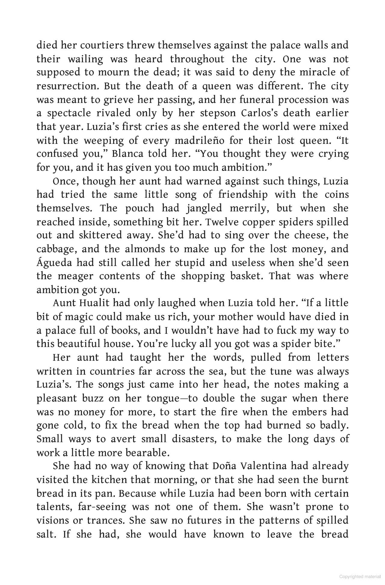 From the New York Times bestselling author of Ninth House, Hell Bent, and creator of the Grishaverse series comes a highly anticipated historical fantasy set during the Spanish Golden Age In a shabby house, on a shabby street, in the new capital of Madrid, Luzia Cotado uses scraps of magic to get through her days of endless toil as a scullion. But when her scheming mistress discovers the lump of a servant cowering in the kitchen is actually hiding a talent for little miracles, she demands Luzia use those gifts to better the family's social position. What begins as simple amusement for the bored nobility takes a perilous turn when Luzia garners the notice of Antonio Pérez, the disgraced secretary to Spain's king. Still reeling from the defeat of his armada, the king is desperate for any advantage in the war against England's heretic queen—and Pérez will stop at nothing to regain the king's favor. Determined to seize this one chance to better her fortunes, Luzia plunges into a world of seers and alchemists, holy men and hucksters, where the line between magic, science, and fraud is never certain. But as her notoriety grows, so does the danger that her Jewish blood will doom her to the Inquisition's wrath. She will have to use every bit of her wit and will to survive—even if that means enlisting the help of Guillén Santangel, an embittered immortal familiar whose own secrets could prove deadly for them both.