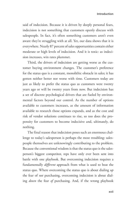 In sales, the worst thing you can hear from a customer isn't 'no.' It's 'I need to think about it.' When this happens, deeply entrenched business advice says to double down on your efforts to sell a buyer on all the ways they might win by choosing you and your business. But this approach backfires dramatically. Why? Because it completely gets wrong the primary driver behind purchasing decision-making: once purchase intent is established, customers no longer care about succeeding. What they really care about is not failing. For years, sales expert Matthew Dixon has been busting longstanding business myths. Now in The JOLT Effect, he and co-author Ted McKenna turn their trademark analysis and latest research to the vital and growing problem of customer indecision - and offer a shocking new approach that turns conventional wisdom on its head. Drawing on a brand-new, first-of-its-kind study of more than two and a half million sales conversations from across industry, they reveal the surprising truth that high-performing sales reps grasp and their average-performing peers don't: only by sing the customer s fear of failure can you get indecisive buyers to go from verbally committing to actually pulling the trigger. Packed with robust data, counterintuitive insights, and practical guidance, The JOLT Effect is the playbook for any salesperson or sales leader who wants to close the gap between customer intent and action - and close more sales.