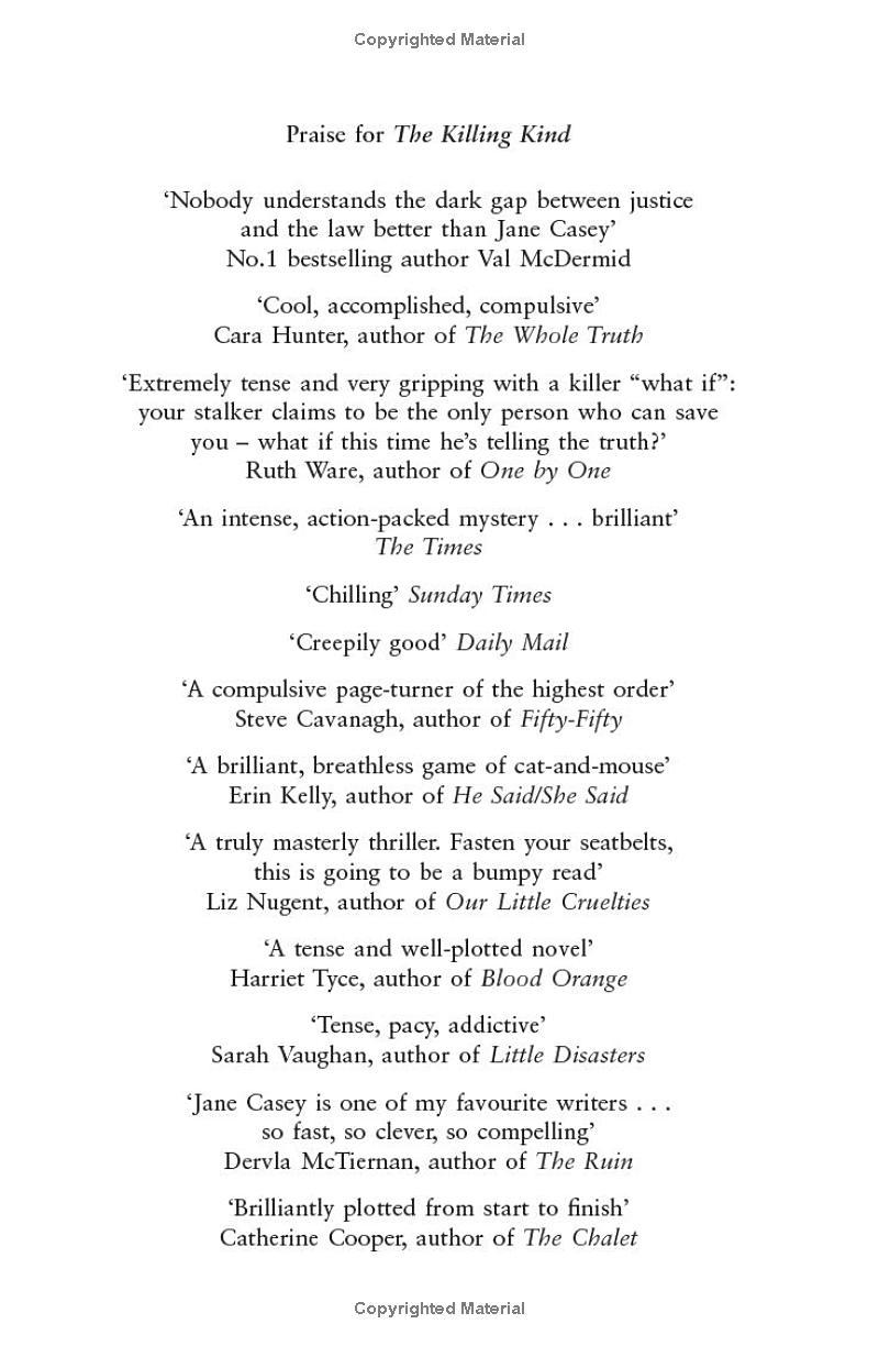 Praise for The Killing Kind 'Nobody understands the dark gap between justice and the law better than Jane Casey' Val McDermid