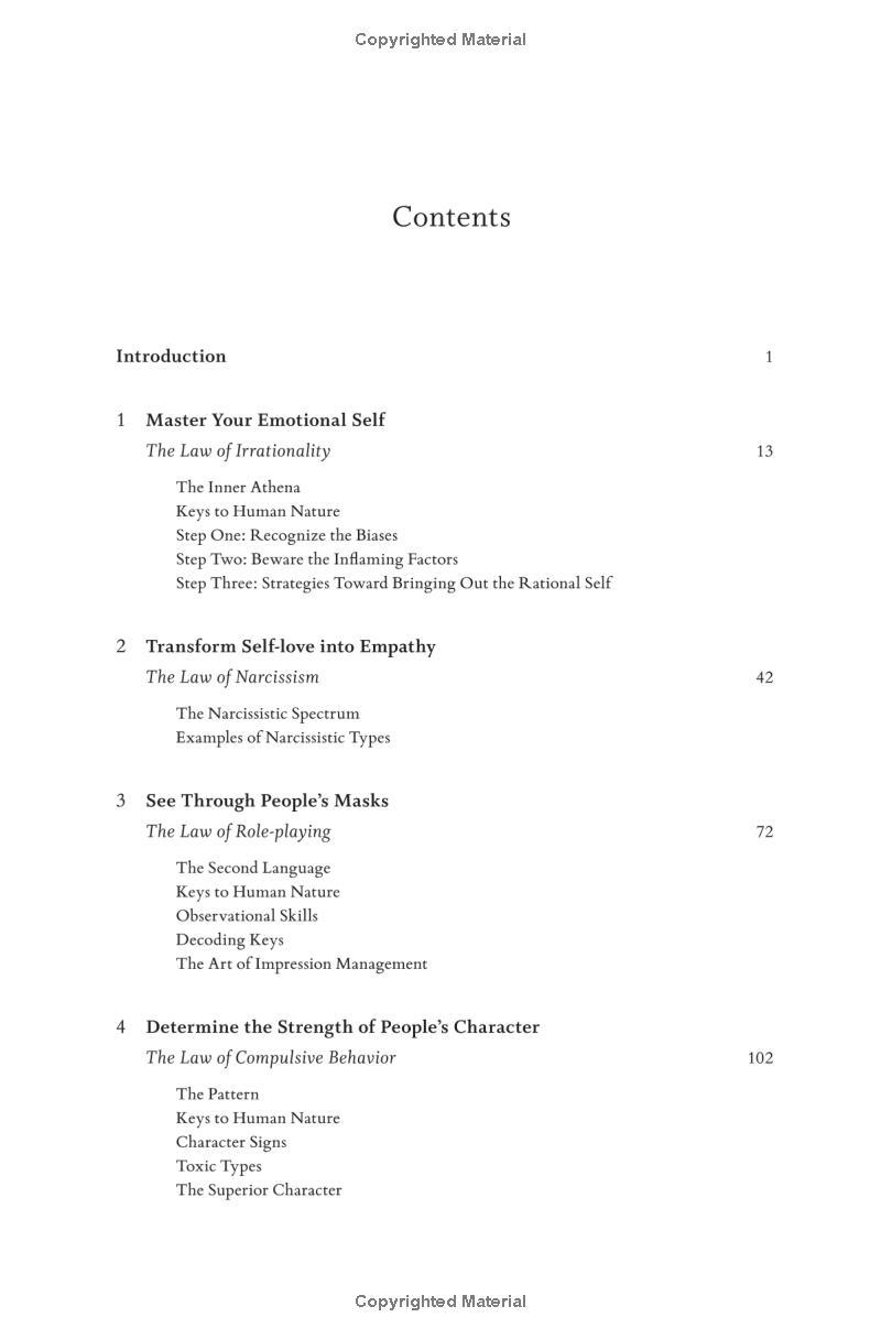 From the #1 New York Times-bestselling author of The 48 Laws of Power comes the definitive new book on decoding the behavior of the people around you Robert Greene is a master guide for millions of readers, distilling ancient wisdom and philosophy into essential texts for seekers of power, understanding and mastery. Now he turns to the most important subject of all - understanding people's drives and motivations, even when they are unconscious of them themselves. We are social animals. Our very lives depend on our relationships with people. Knowing why people do what they do is the most important tool we can possess, without which our other talents can only take us so far. Drawing from the ideas and examples of Pericles, Queen Elizabeth I, Martin Luther King Jr, and many others, Greene teaches us how to detach ourselves from our own emotions and master self-control, how to develop the empathy that leads to insight, how to look behind people's masks, and how to resist conformity to develop your singular sense of purpose. Whether at work, in relationships, or in shaping the world around you, The Laws of Human Nature offers brilliant tactics for success, self-improvement, and self-defense.