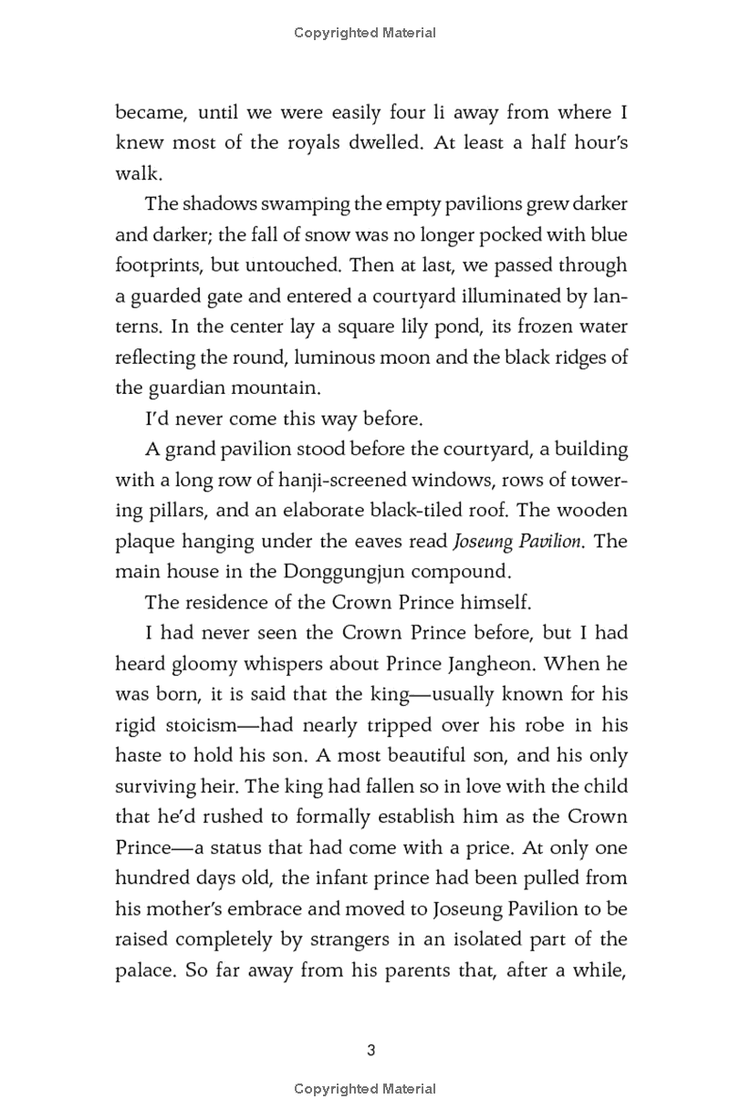 Joseon (Korea), 1758. There are few options available to illegitimate daughters in the capital city, but through hard work and study, eighteen-year-old Hyeon has earned a position as a palace nurse. All she wants is to keep her head down, do a good job, and perhaps finally win her estranged father's approval.