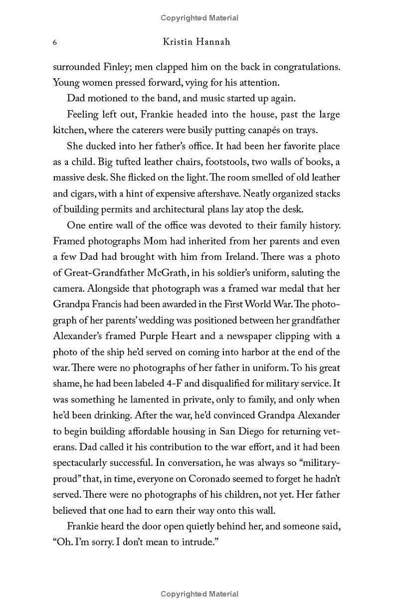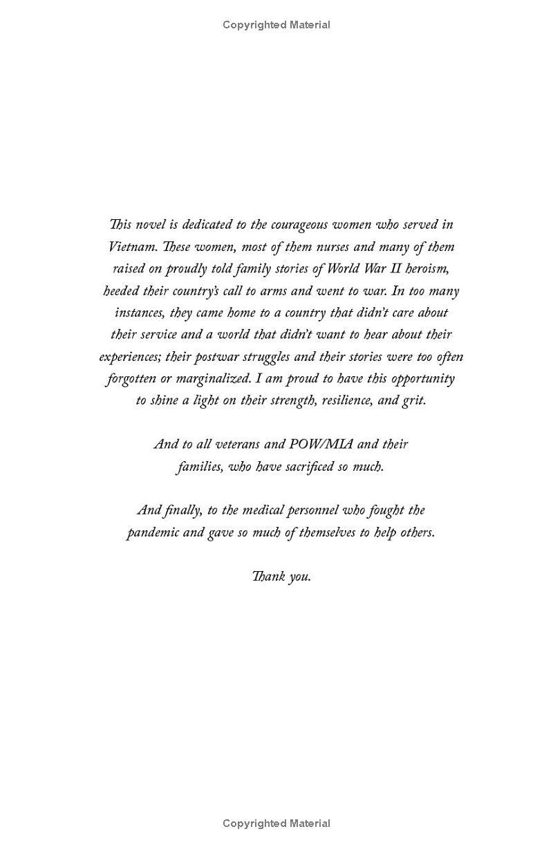 The Women is the story of one woman who goes to war, but it shines a light on the story of all women who put themselves in harm’s way to help others. Women whose sacrifice and commitment to their country has been all too often forgotten. A novel of searing insight and lyrical beauty, The Women is a profoundly emotional, richly drawn story with a memorable heroine whose extraordinary idealism and courage under fire define an era.