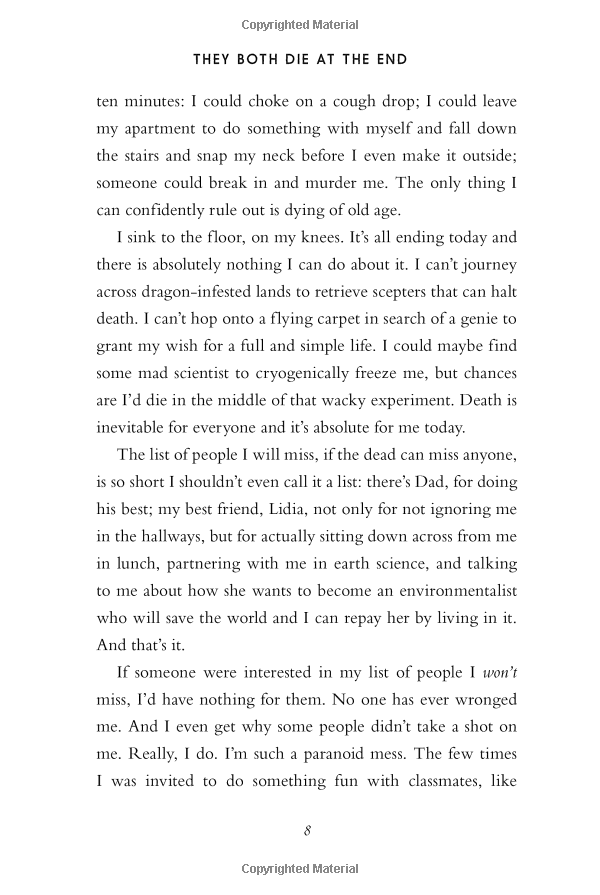 On September 5, a little after midnight, Death-Cast calls Mateo Torrez and Rufus Emeterio to give them some bad news: They're going to die today.