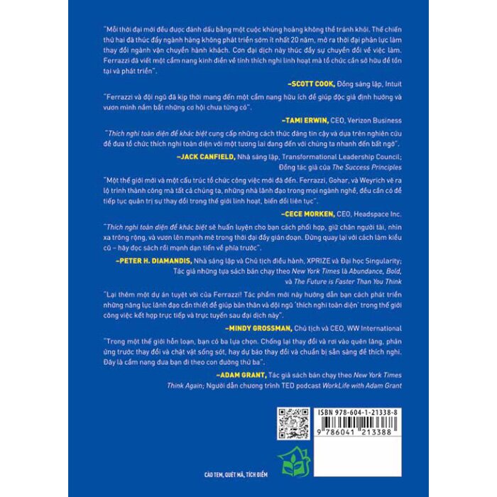 Tác giả có sách bán chạy theo New York Times Keith Ferrazzi, cùng các đồng tác giả Kian Gohar và Noel Weyrich, sẽ cho các nhà lãnh đạo thấy cách định hình tổ chức và áp dụng các phương pháp mới để cạnh tranh trong thế giới mới hậu đại dịch. Dựa trên nghiên cứu đột phá về hàng nghìn nhà điều hành, nhà tiên phong và nhà đổi mới trên toàn cầu, những người đã thích nghi toàn diện chiến lược, mô hình kinh doanh, tổ chức, và cả nền văn hóa doanh nghiệp của mình để cạnh tranh trong thế giới mới về việc làm,  cuốn sách này sẽ giúp bạn: